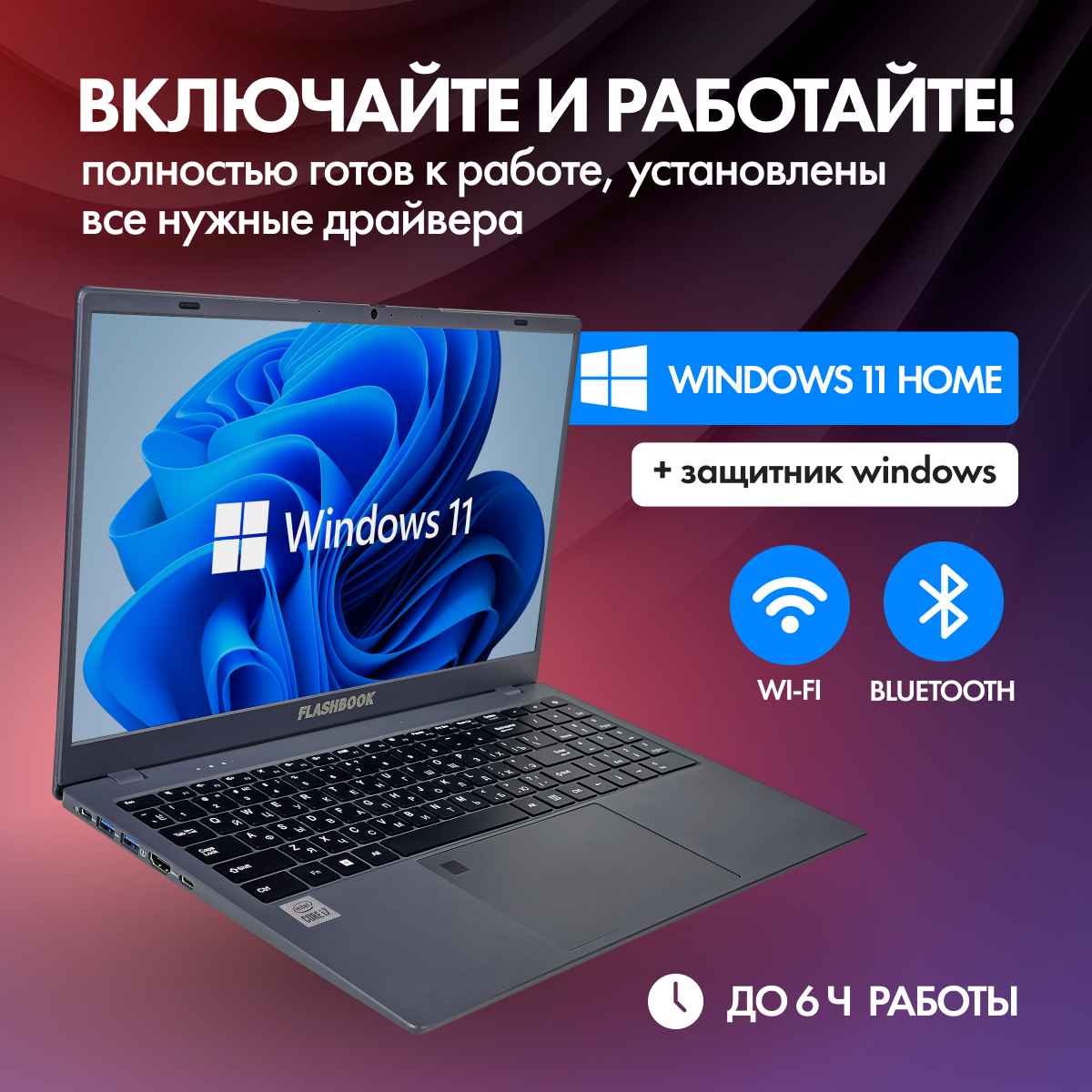 Ноутбук для работы и учебы, N95 (4 ядра), 16 ГБ, 512 ГБ, Windows 11, серый