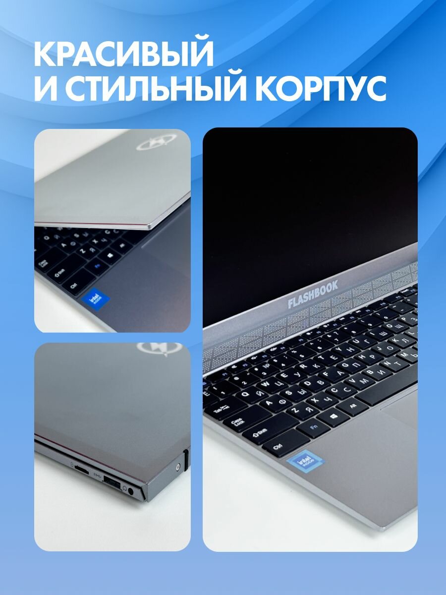Ноутбук для работы и учебы, N95 (4 ядра), 16 ГБ, 512 ГБ, Windows 11, серый