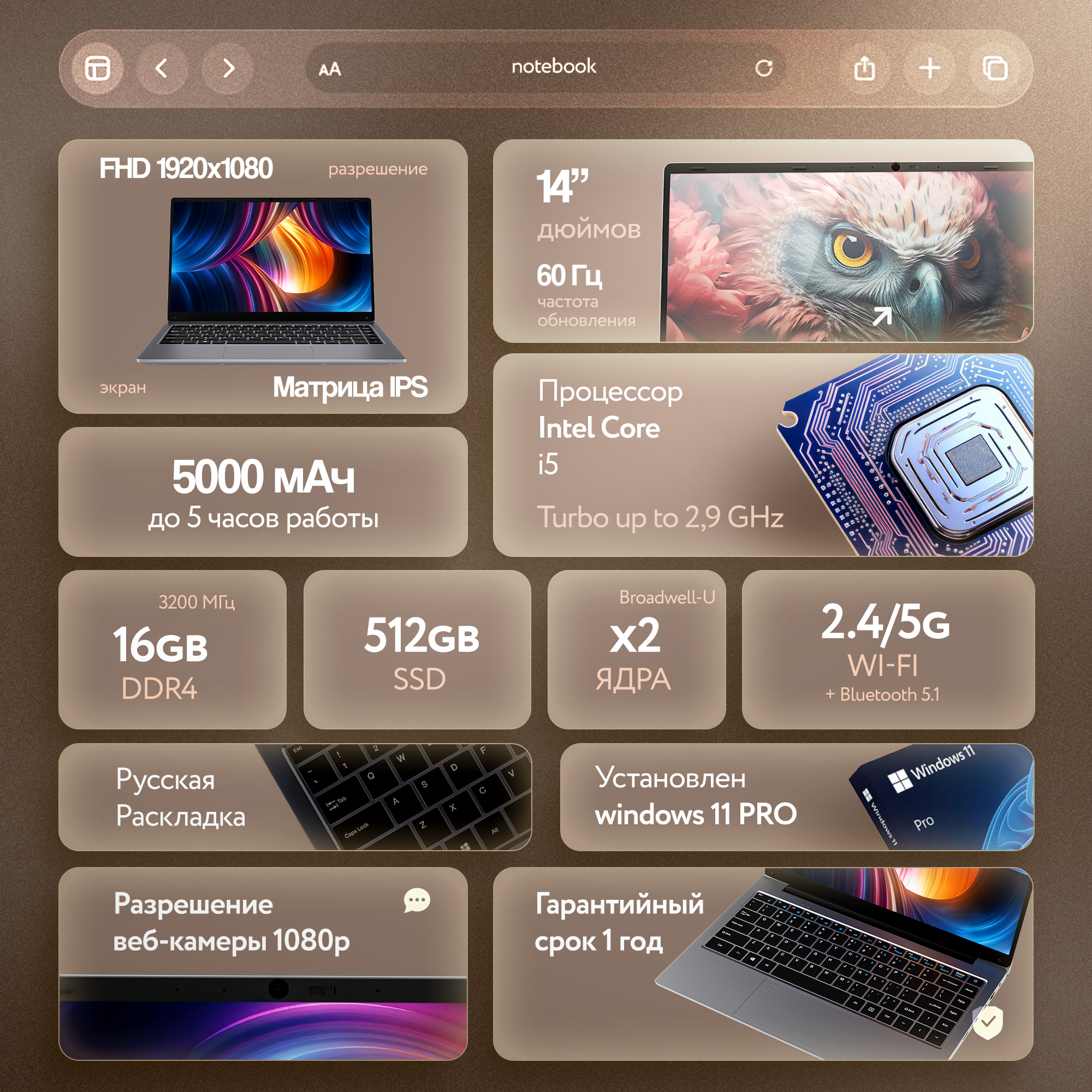 Сохранить14.1" Ноутбук для работы и учебы, RAM 16 ГБ, SSD 512Гб, IPS Full HD 1920x1080, Intel I5, Windows 11, цвет Серый интересное: