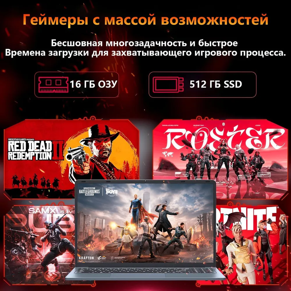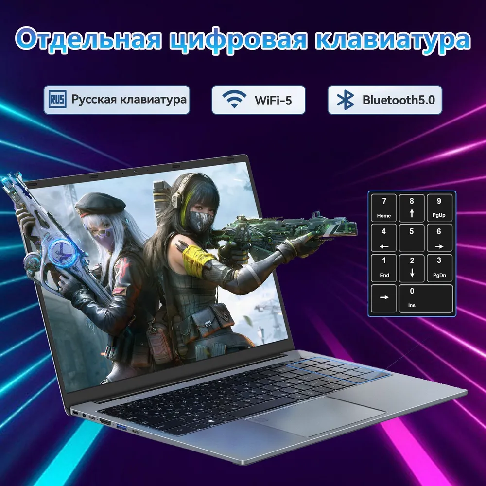 Ноутбук N95, 15.6-дюймовый ноутбук, процессор Intel, 16 ГБ ОЗУ, SSD 512 ГБ, Windows 11, русская клавиатура, подсветка, игровой ноутбук, 4K видео, RWI 3.40 ГГц, просмотр фильмов, подключение WiFi, NFC, бизнес-компьютер, женский компьютер