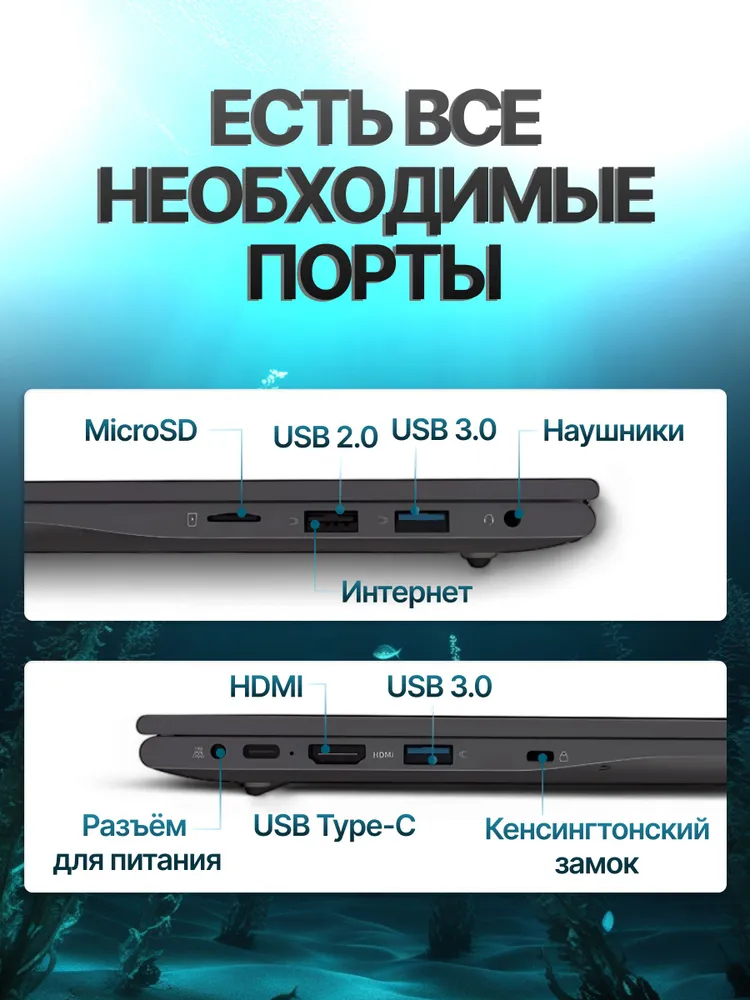 Ноутбук, Windows 11, экран 14,1", процессор Intel N95, SSD+HDD, 512ГБ