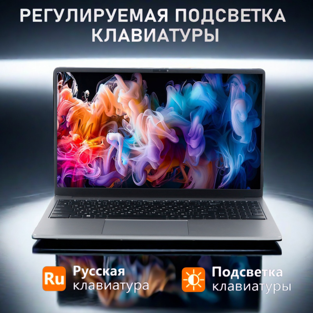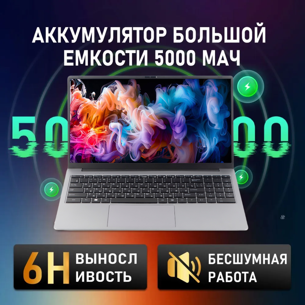 15.6" Ноутбук Intel N95, для работы и учебы, Notebook, RAM 16 ГБ, SSD 1024ГБ, IPS Full HD 1920x1080, Windows 11 pro, цвет Mid Gray, русская раскладка