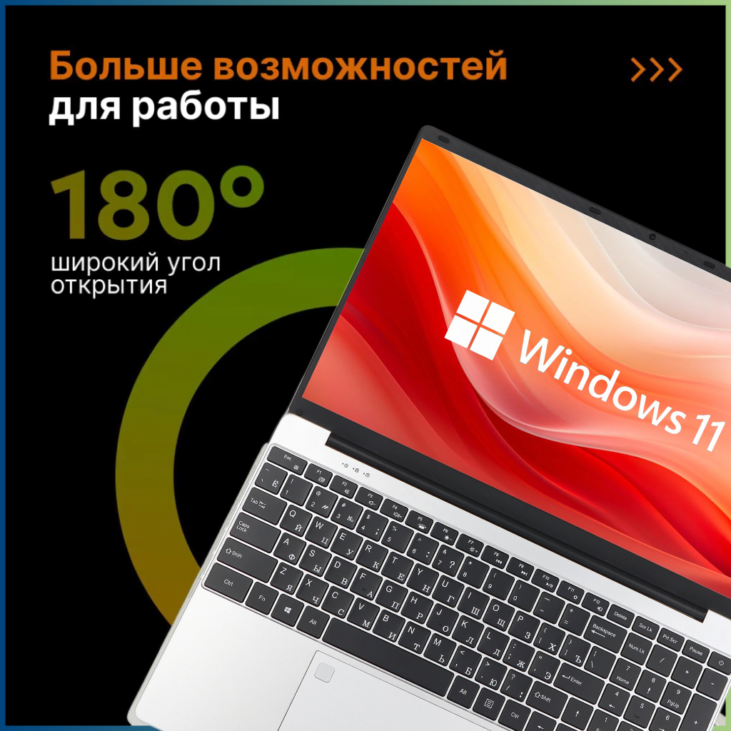 15.6" Ноутбук Intel N95, для работы и учебы, Notebook, RAM 16 ГБ, SSD 256ГБ, IPS Full HD 1920x1080, Windows 11 pro, цвет Mid Gray, русская раскладка