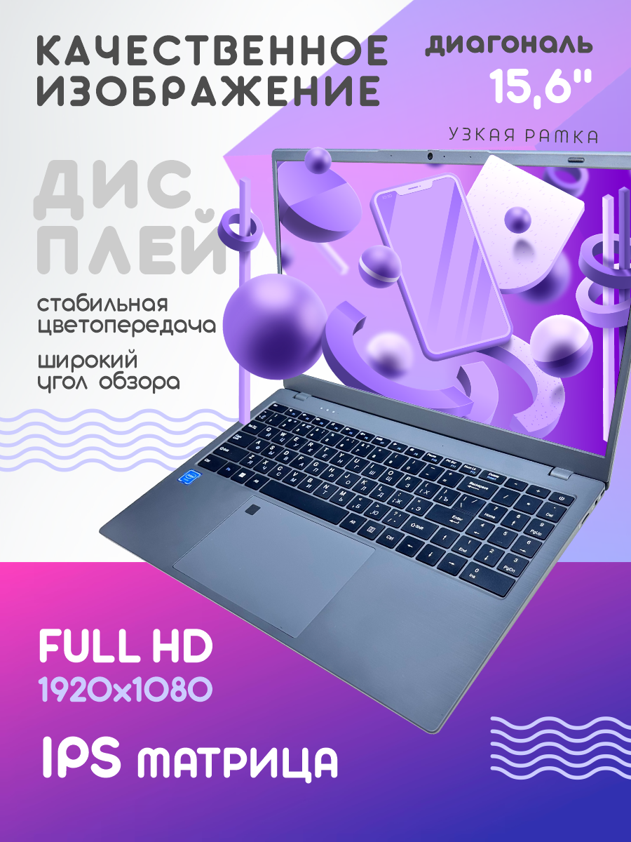 Купить Ноутбук для работы и учебы 15,6 IPS 4 ядра RAM 12 GB DDR5 SSD 512 GB Русская клавиатура с подсветкой Windows 11 Pro