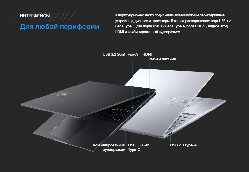 Сохранить16" Ноутбук ASUS VivoBook 16 X, Intel Core i7-1355U (10 ядер), RAM 16 ГБ, SSD 1 ТБ, Intel UHD , Windows 11 Home + Office 2021 , Русская раскладка интересное: