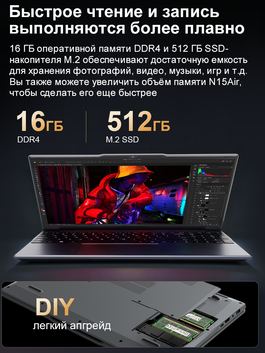Ноутбук Acoveita N15 Air 15.6" IPS Full HD Intel N95 16 ГБ/512 ГБ SSD Windows 11 Pro интересное: