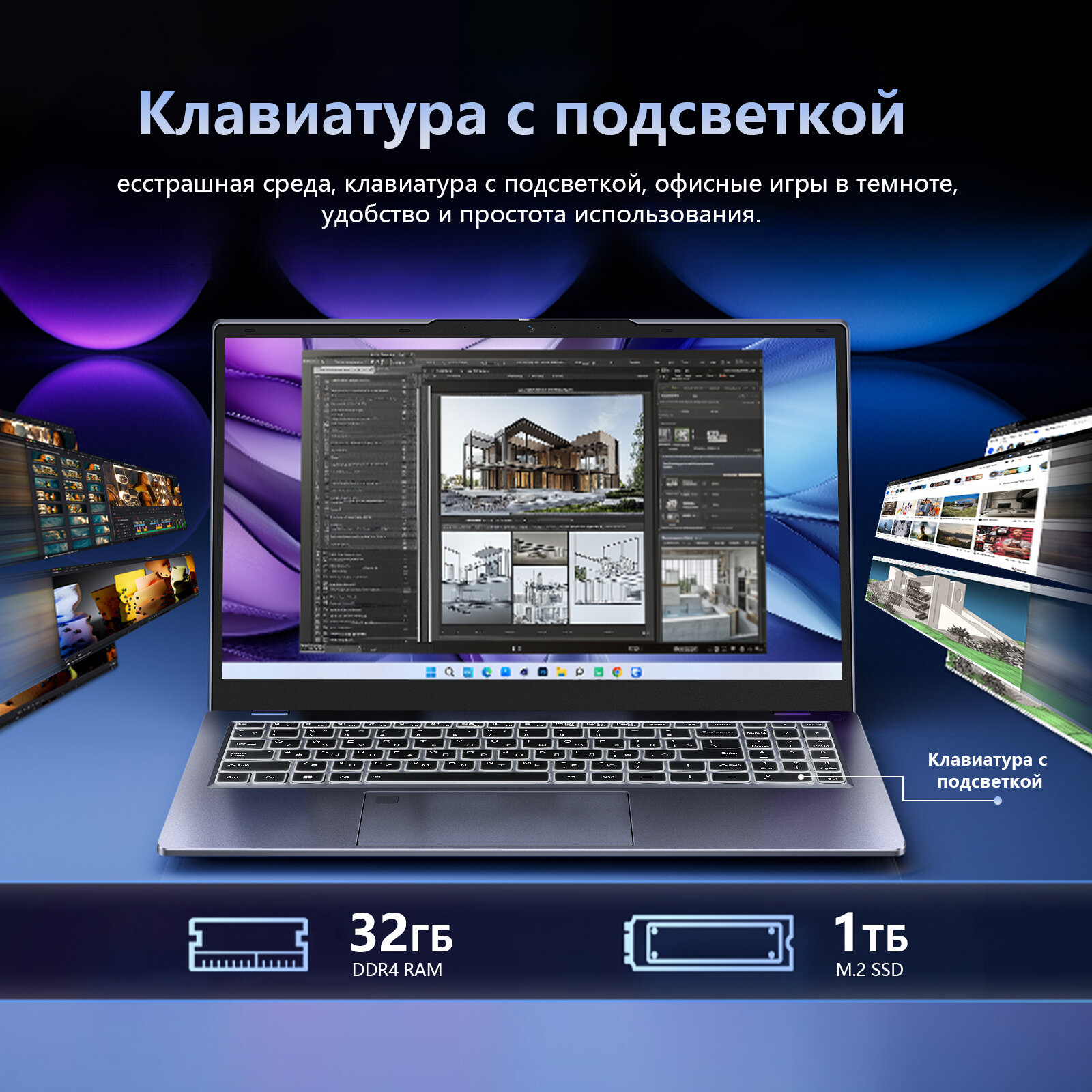 Игровой ноутбук 15.6", Intel N95, RAM 16 ГБ, SSD 512 ГБ, 4-ядерный, (разблокировка по отпечатку пальца)