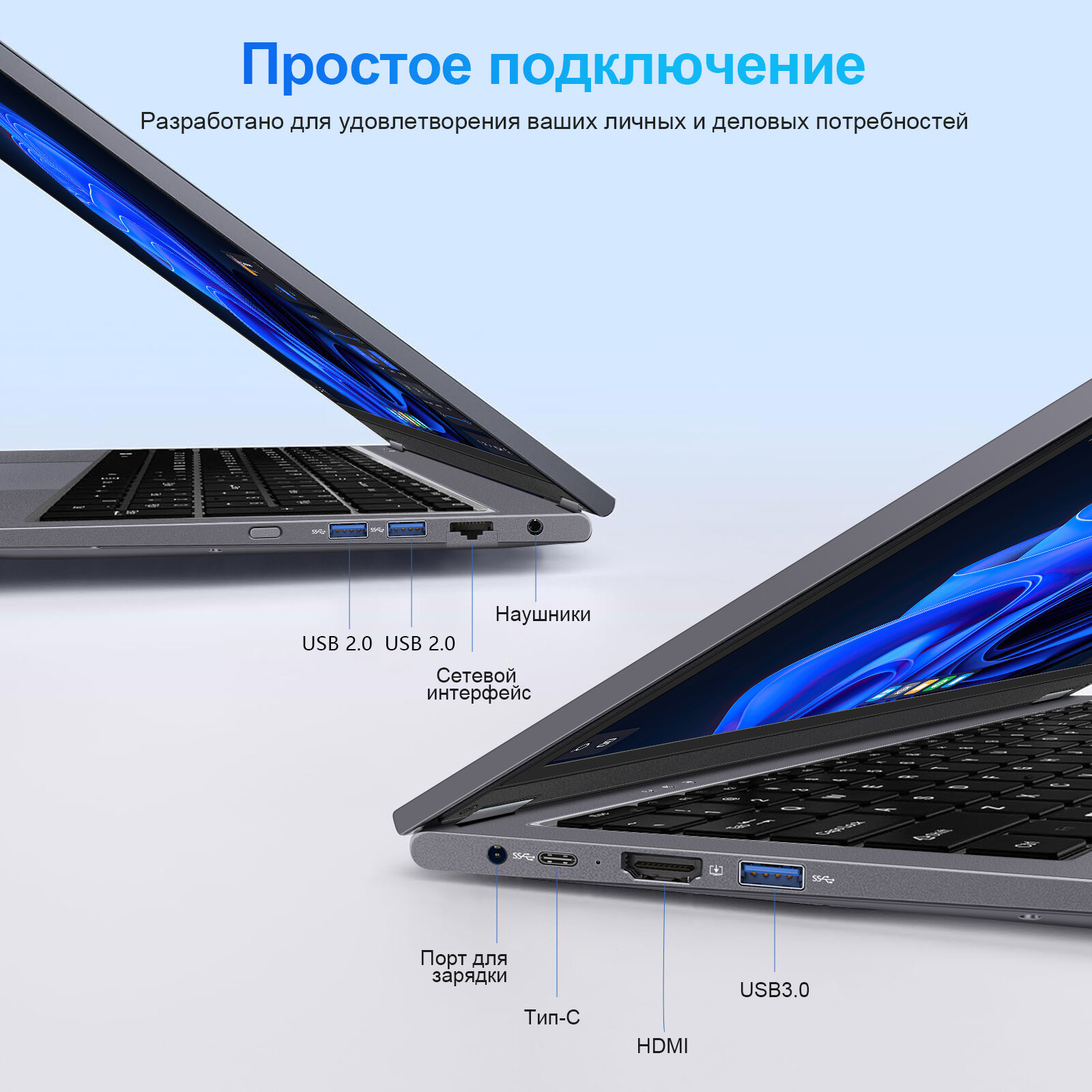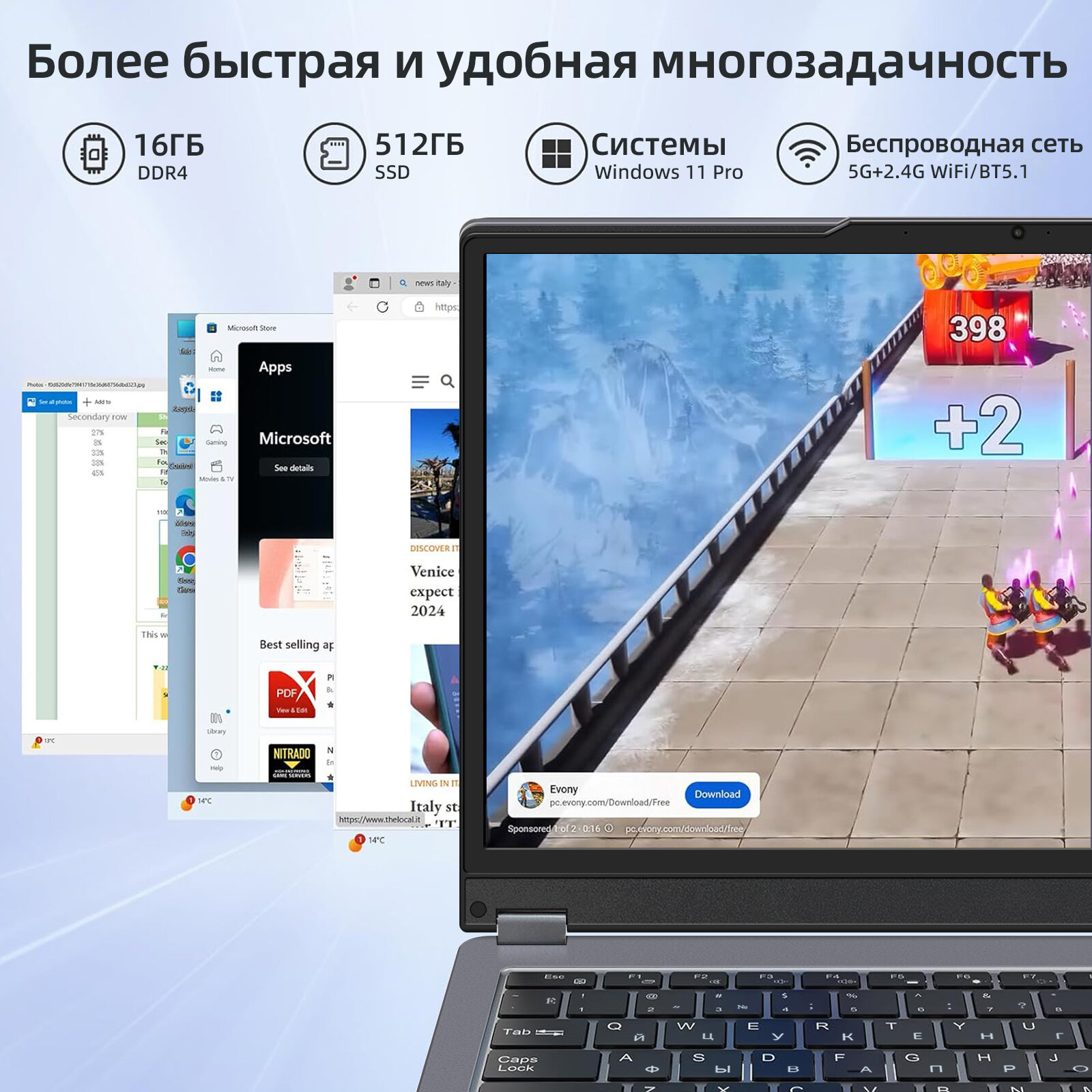 Игровой ноутбук 15.6", Intel Alder Lake N95, RAM 16 ГБ, SSD 512 ГБ, Intel UHD Graphics, Windows Pro,(4-ядерный, разблокировка по отпечатку пальца)