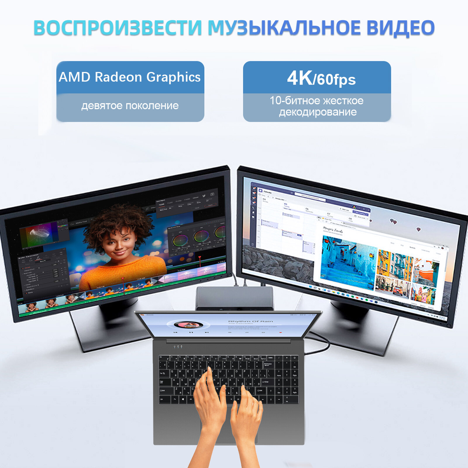 Игровой ноутбук 15.6", Intel N95, RAM 16 ГБ, SSD 512 ГБ, 4-ядерный, (разблокировка по отпечатку пальца)