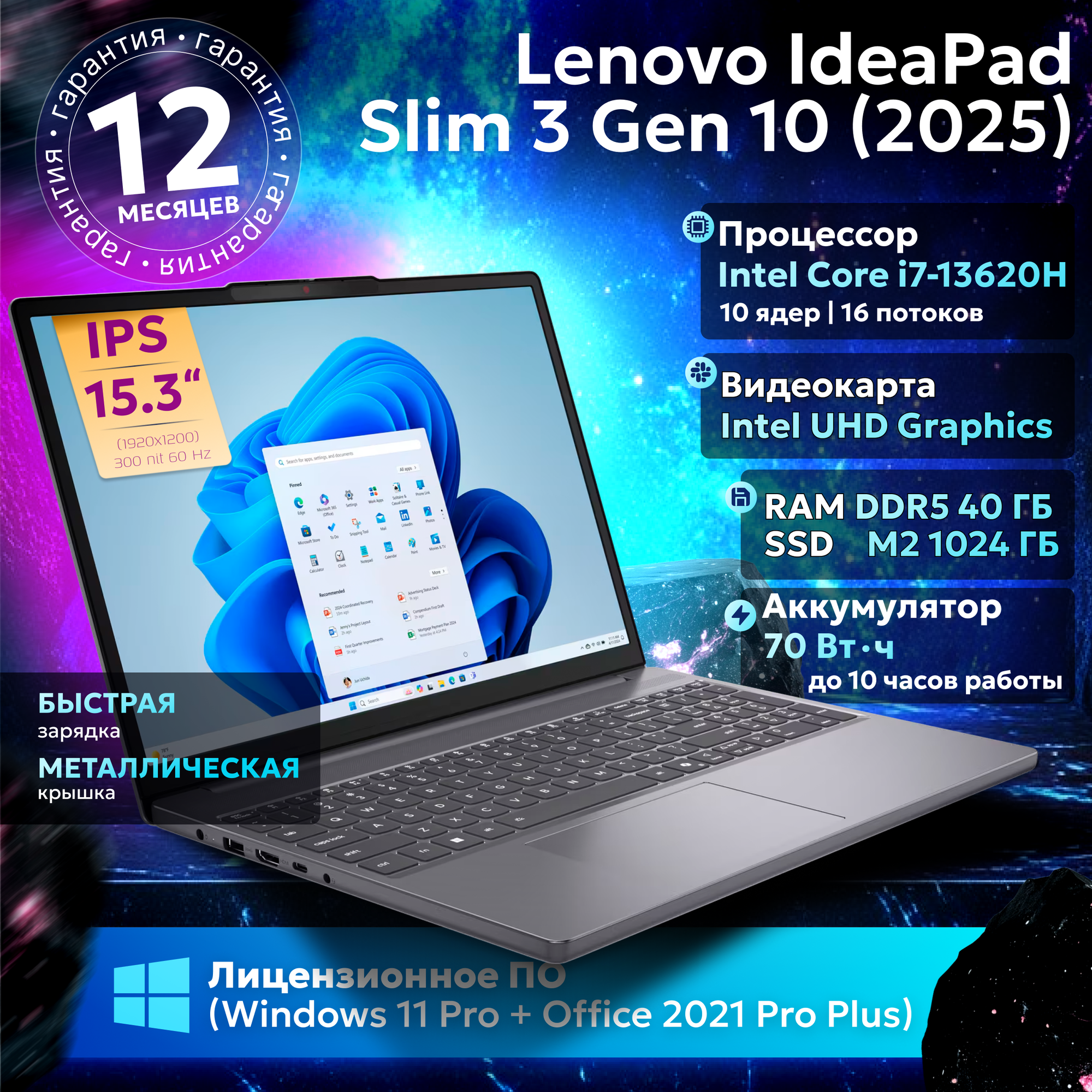 Ниже Вы можете прочитать отзывы на 15.3" Ноутбук Lenovo IdeaPad Slim 3 Gen 10, Intel Core i7-13620H (4.9 ГГц), RAM 40 ГБ LPDDR5, SSD 1 ТБ, Intel UHD Graphics, Windows 11 Pro + Office 2021 Pro Plus, Arctic Grey, Русская раскладка, ознакомится с подробными характеристиками, посмотреть интересные обзоры и фотографии на 15.3" Ноутбук Lenovo IdeaPad Slim 3 Gen 10, Intel Core i7-13620H (4.9 ГГц), RAM 40 ГБ LPDDR5, SSD 1 ТБ, Intel UHD Graphics, Windows 11 Pro + Office 2021 Pro Plus, Arctic Grey, Русская раскладка.