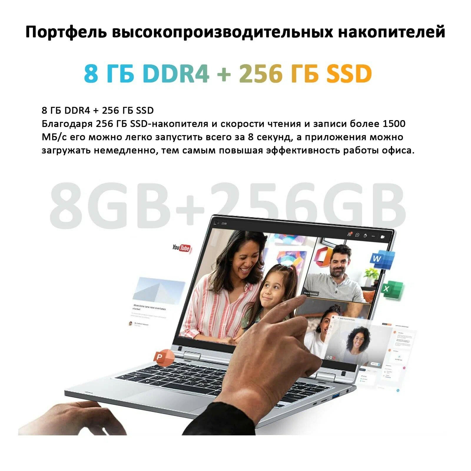 VANWIN Ноутбук с сенсорным экраном, 11.6", , Intel Celeron N4020C, RAM 8 ГБ, SSD 256 ГБ, Планшетный 2-в-1 Ноутбук интересное: