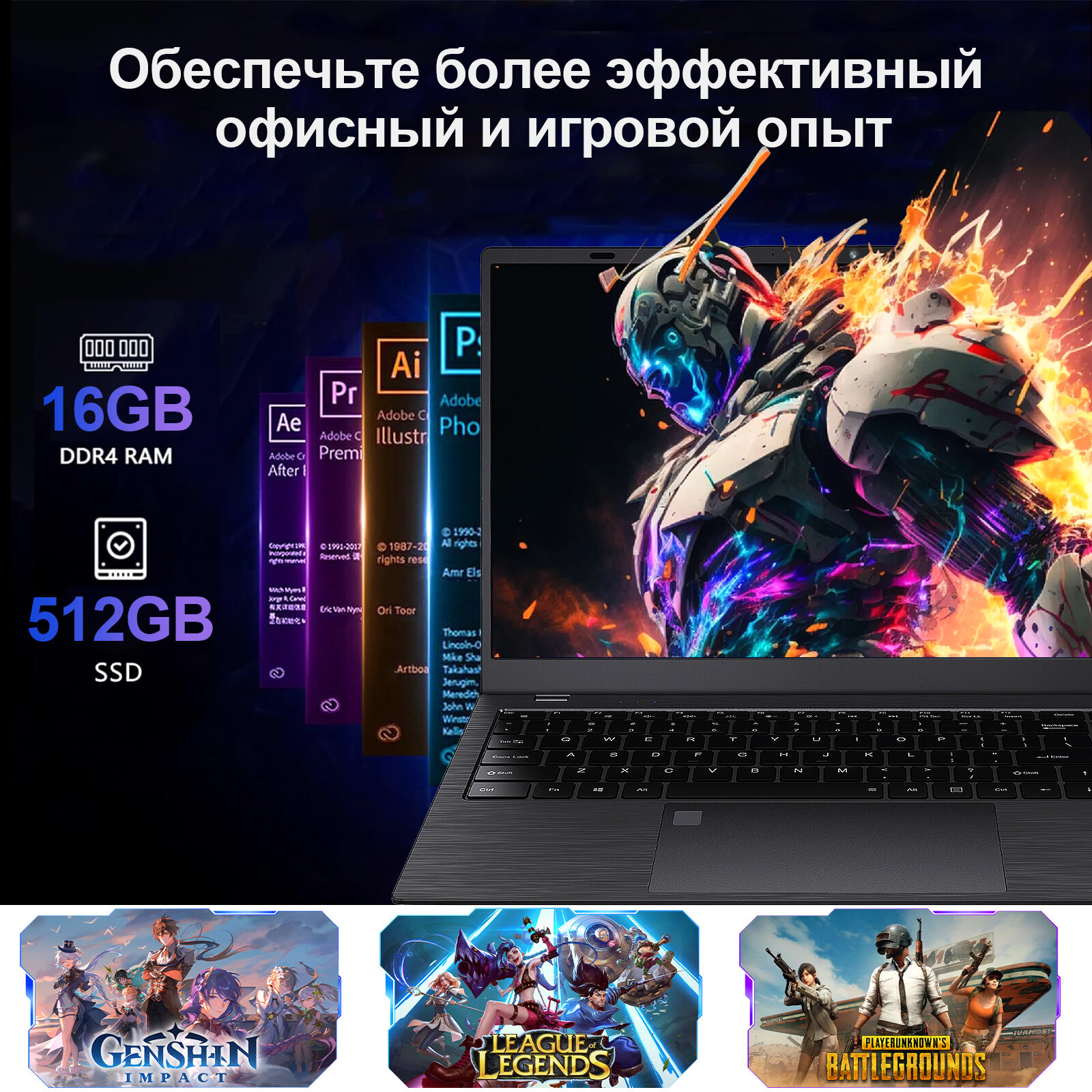 Купить Игровой ноутбук Intel N95 , экран 15.6", RAM16ГБ SSD 512ГБ, Отпечаток пальца