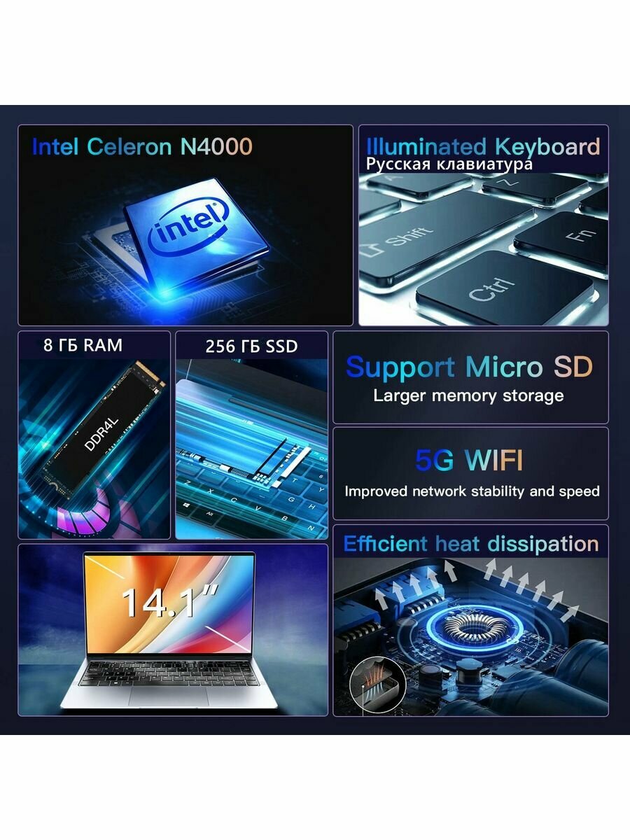Ноутбук 8 + 256 ГБ Intel Celeron N4000 15.6 дюйма W11 Pro, серый интересное: