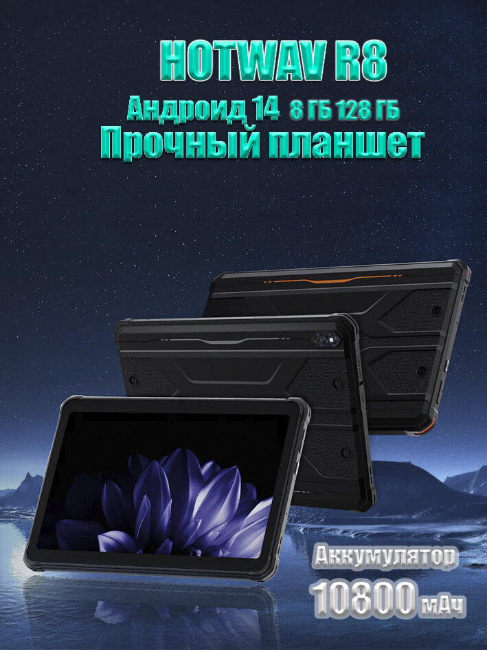 Планшет противоударный игровой Hotwav TAB R8 12/128gb, Wi-Fi + Cellular, Black черный 10800 мАч интересное: