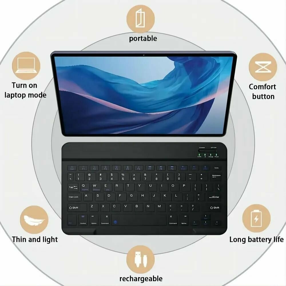 Планшет с клавиатурой и стилусом Android 12, экран 10.36, 2 камеры, слот для карты памяти, серый