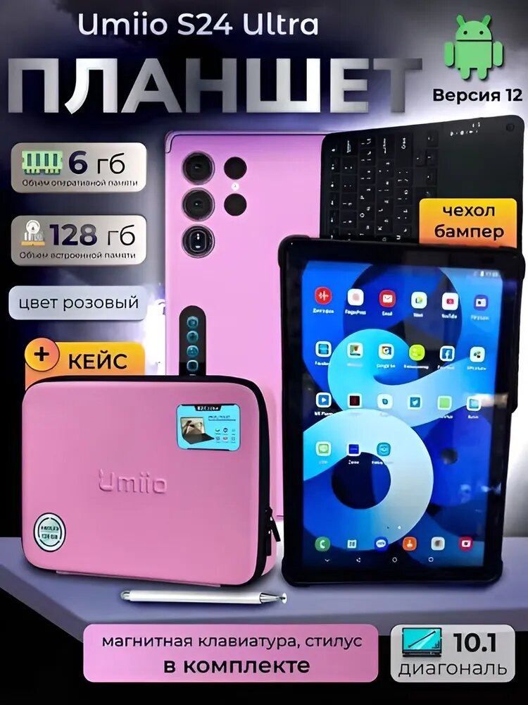 Планшет UMIIO S24 Ultra, Розовый Pink 6gb оперативной и 128gb встроенной памяти интересное: