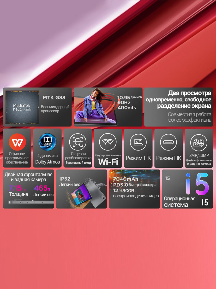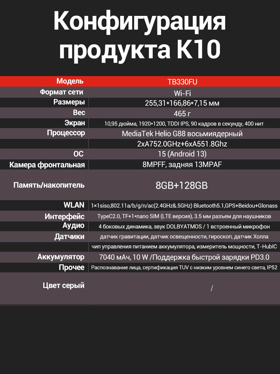 Планшет Lenovo K10 CN, Wi-Fi, экран 10.95", 90Hz, 128GB, 8GB интересное: