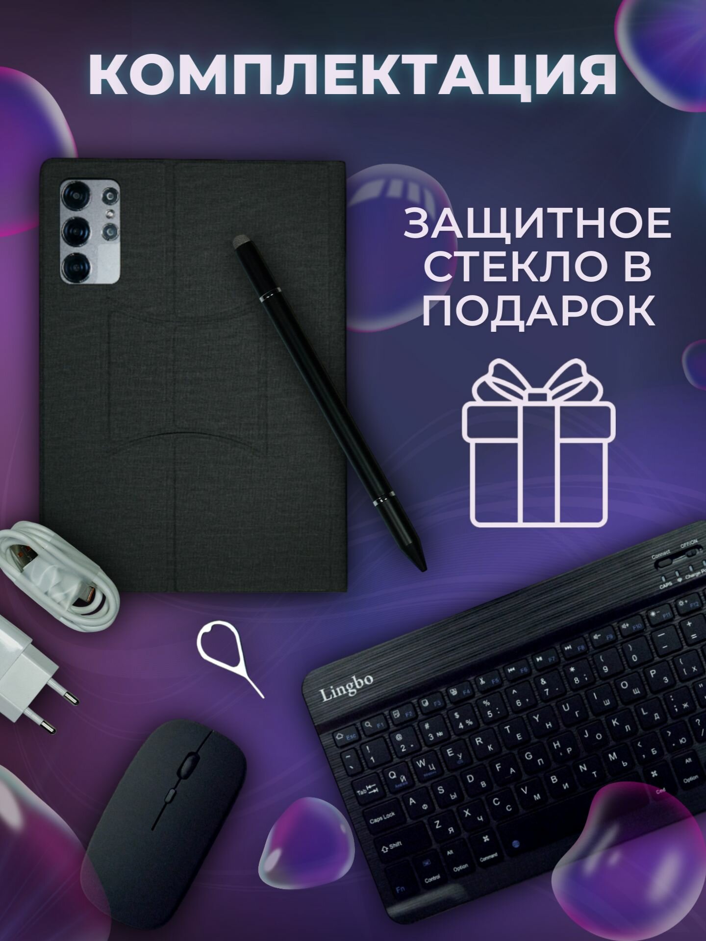 Купить S25 Ultra Планшет андроид 10.1" 16 ГБ/1024 ГБ, с клавиатурой, детский, для работы и учебы, темно-серый