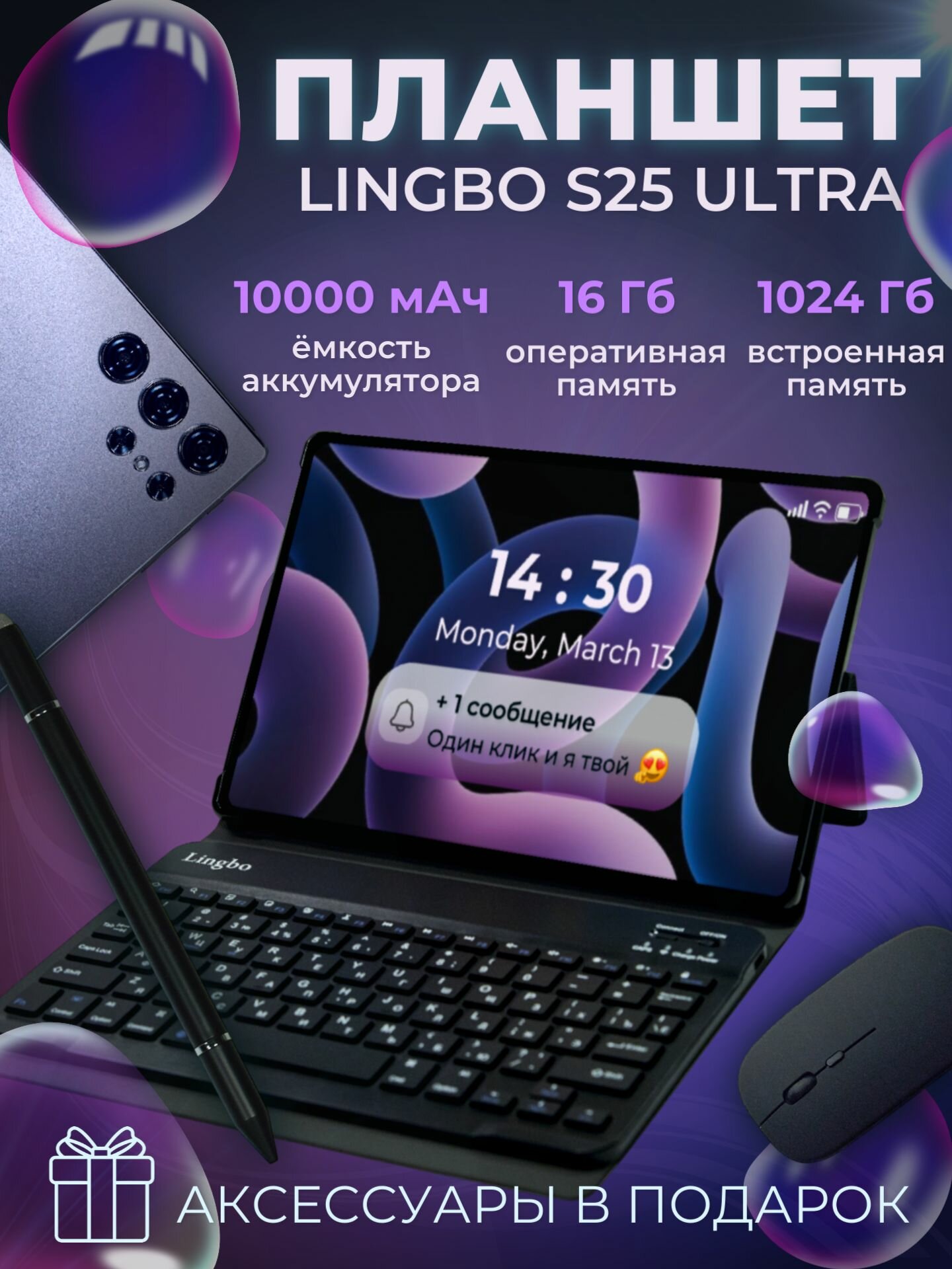 S25 Ultra Планшет андроид 10.1" 16 ГБ/1024 ГБ, с клавиатурой, детский, для работы и учебы, темно-серый интересное: