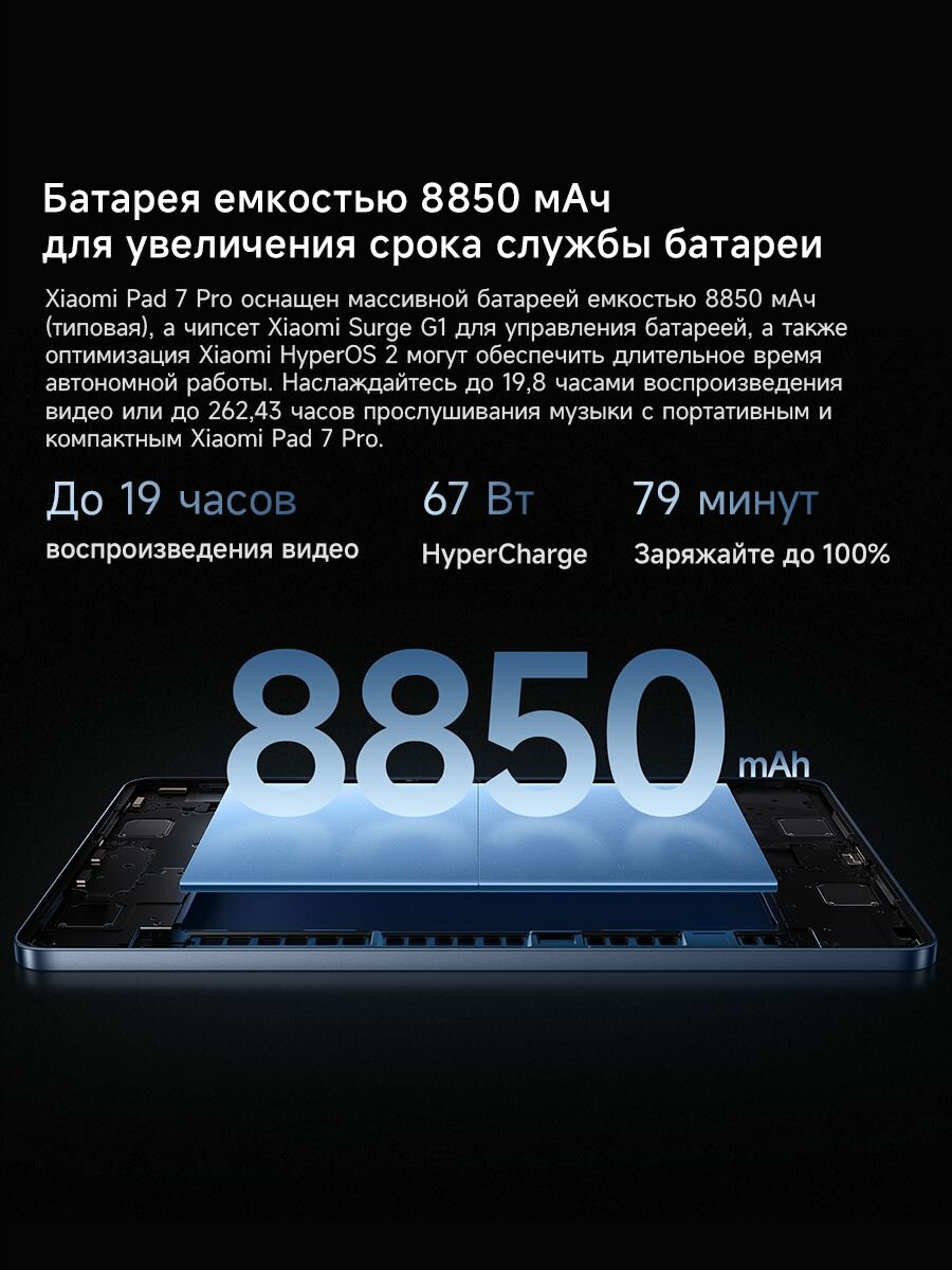 Планшеты Xiaomi Pad 7 Pro Глобальная версия Snapdragon 8s Gen 3 11,2-дюймовый 3,2K 144 Гц 12 ГБ/512 ГБ Синий интересное: