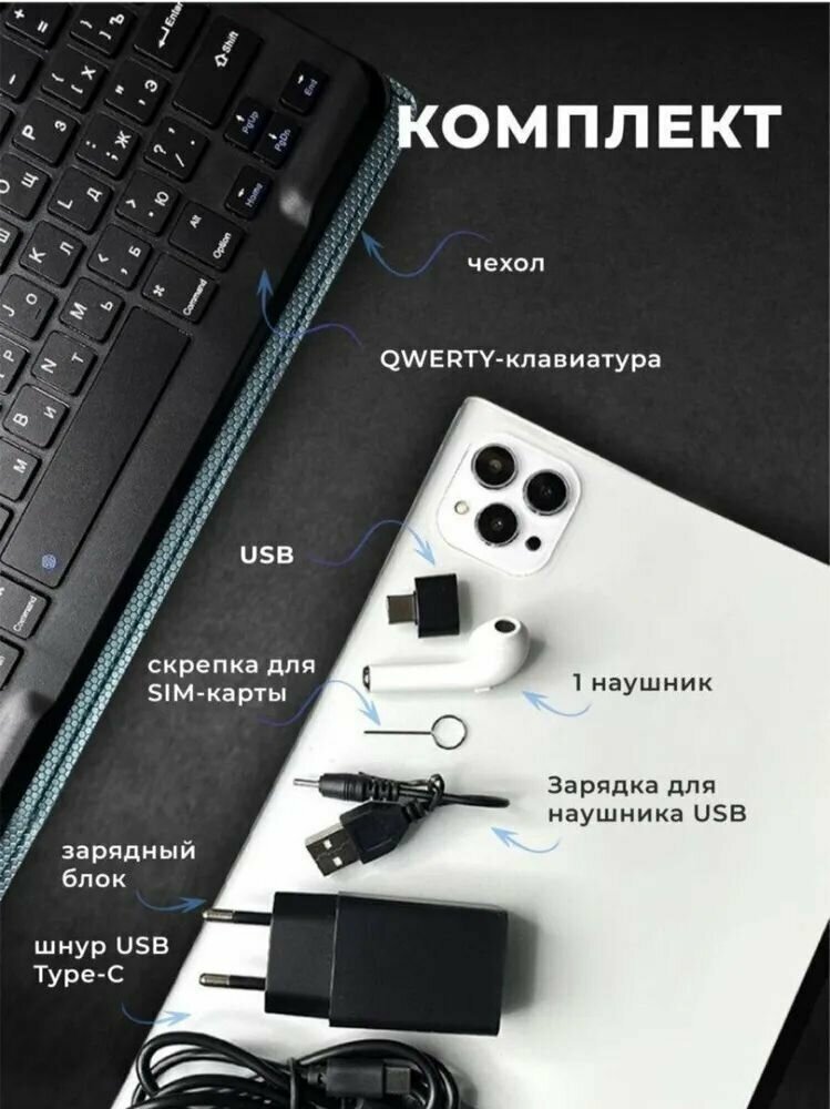 Планшет Rocket Зеленый 6+128GB сим-карта 4G LTE " В комплекте мышь, русская клавиатура и беспроводные наушники.
