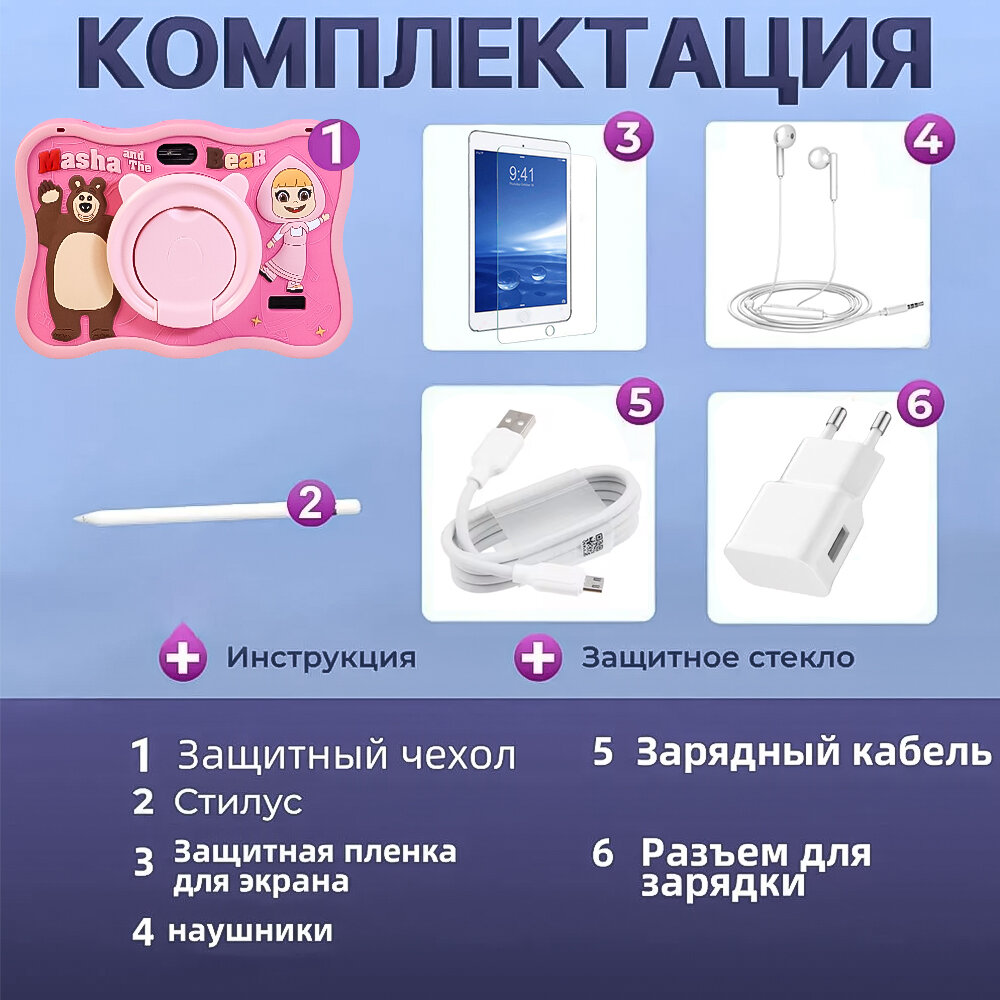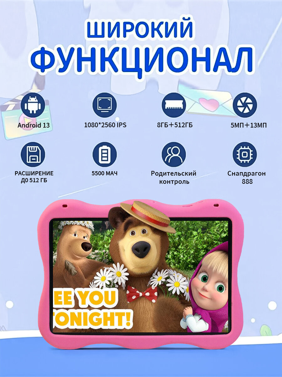 Детский планшет, Марта и медведь, 7 дюймов, 8+512 Гб, Android 13 интересное:
