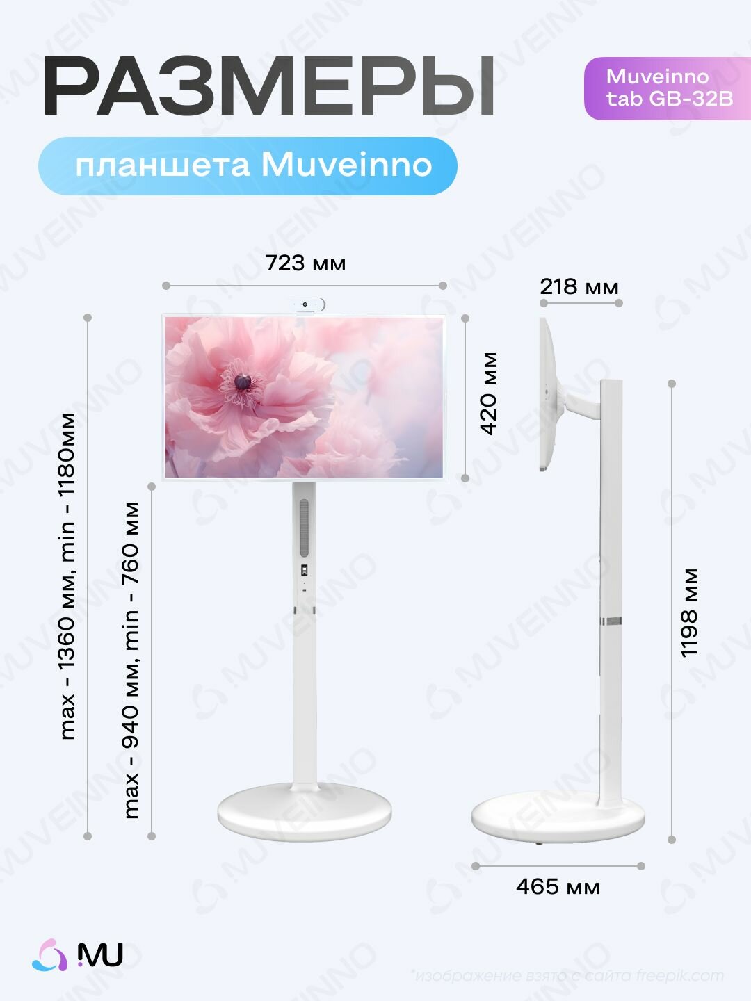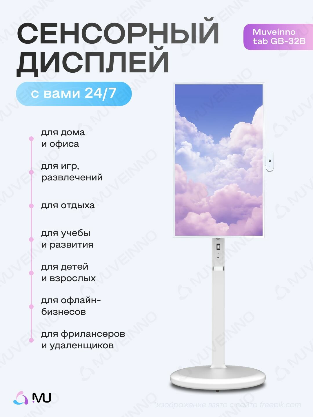 Телевизор Планшет на колесах , смарт дисплей Muveinno tab GB-32B белый 32 дюйм интересное: