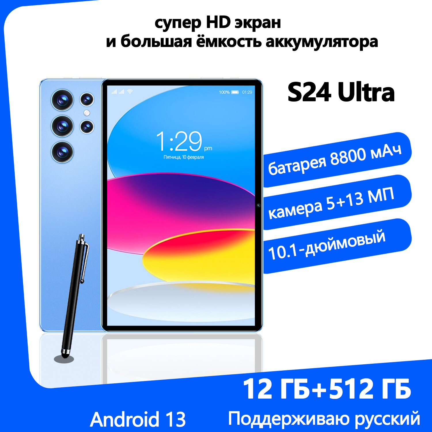 Купить 10.1"планшет S24 Ultra(2024), Русская версия,12 ГБ/512 ГБ, IPS/2000*1200, Подходит для игр и просмотра сериалов, синий