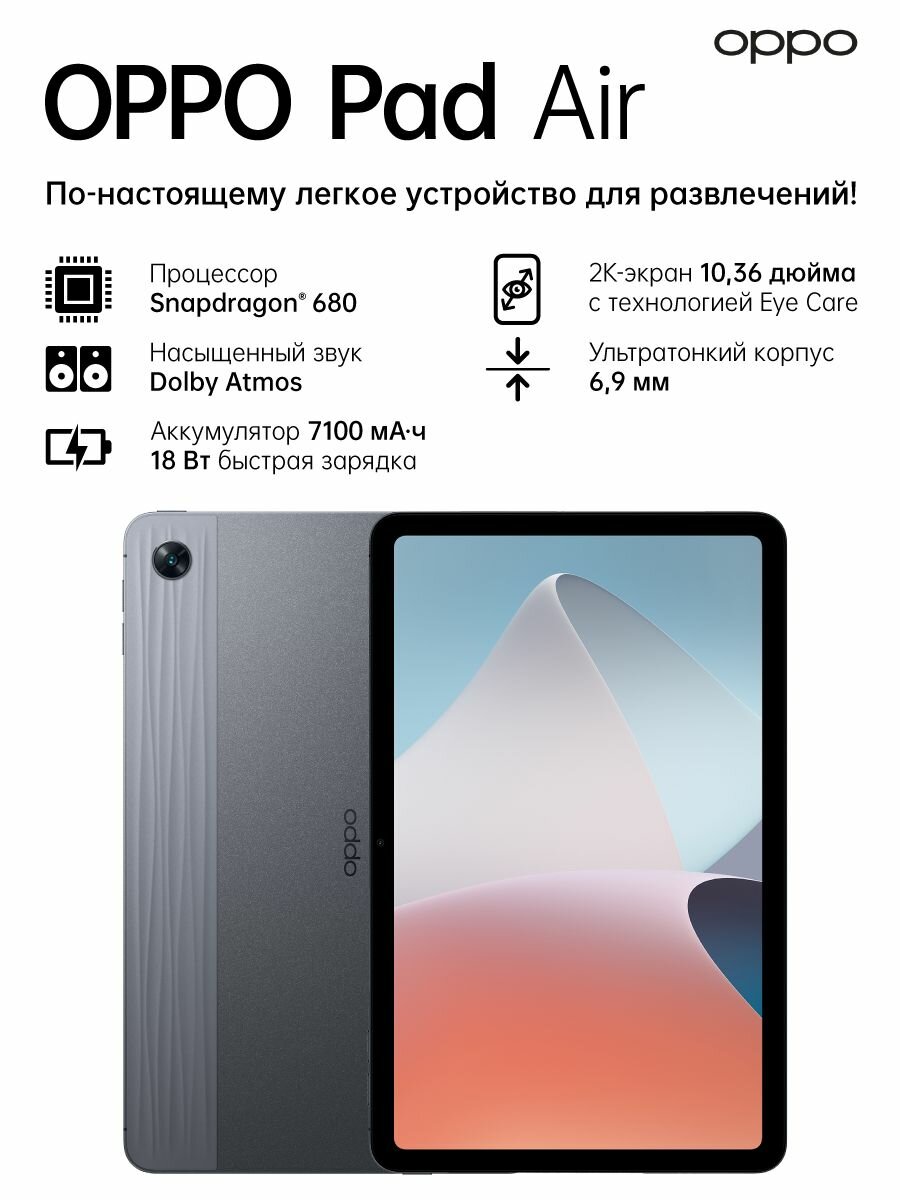 Планшет Oppo Pad Air 4/64Gb Grey, Qualcomm Snapdragon 680, Wi-Fi интересное: