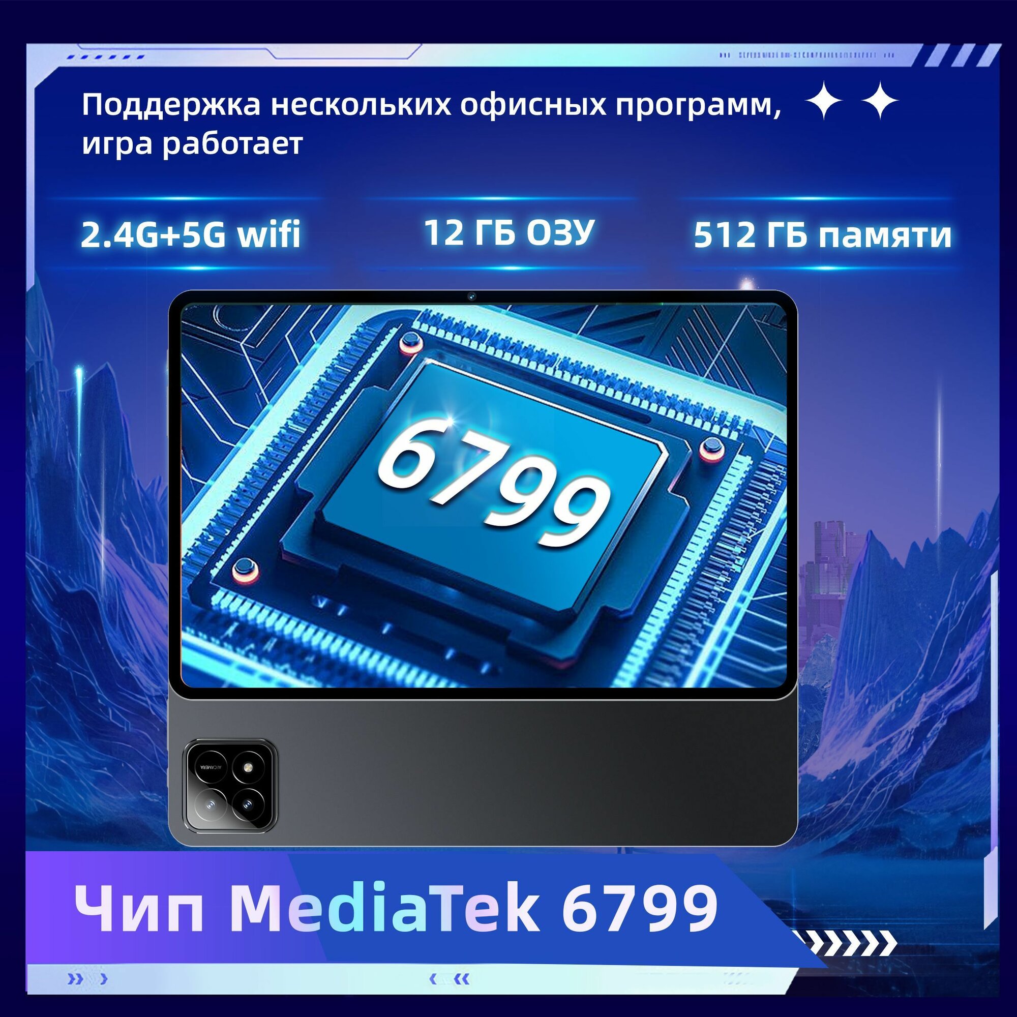 Планшет, с клавиатурой, 12 ГБ+512 ГБ оперативной памяти, аккумулятор 7000 мАч, Android 13, серый интересное: