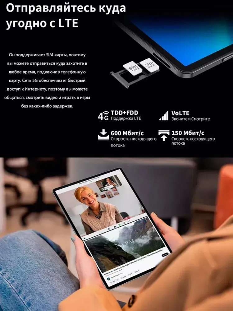 Планшет Rocket Зеленый 6+128GB сим-карта 4G LTE " В комплекте мышь, русская клавиатура и беспроводные наушники.
