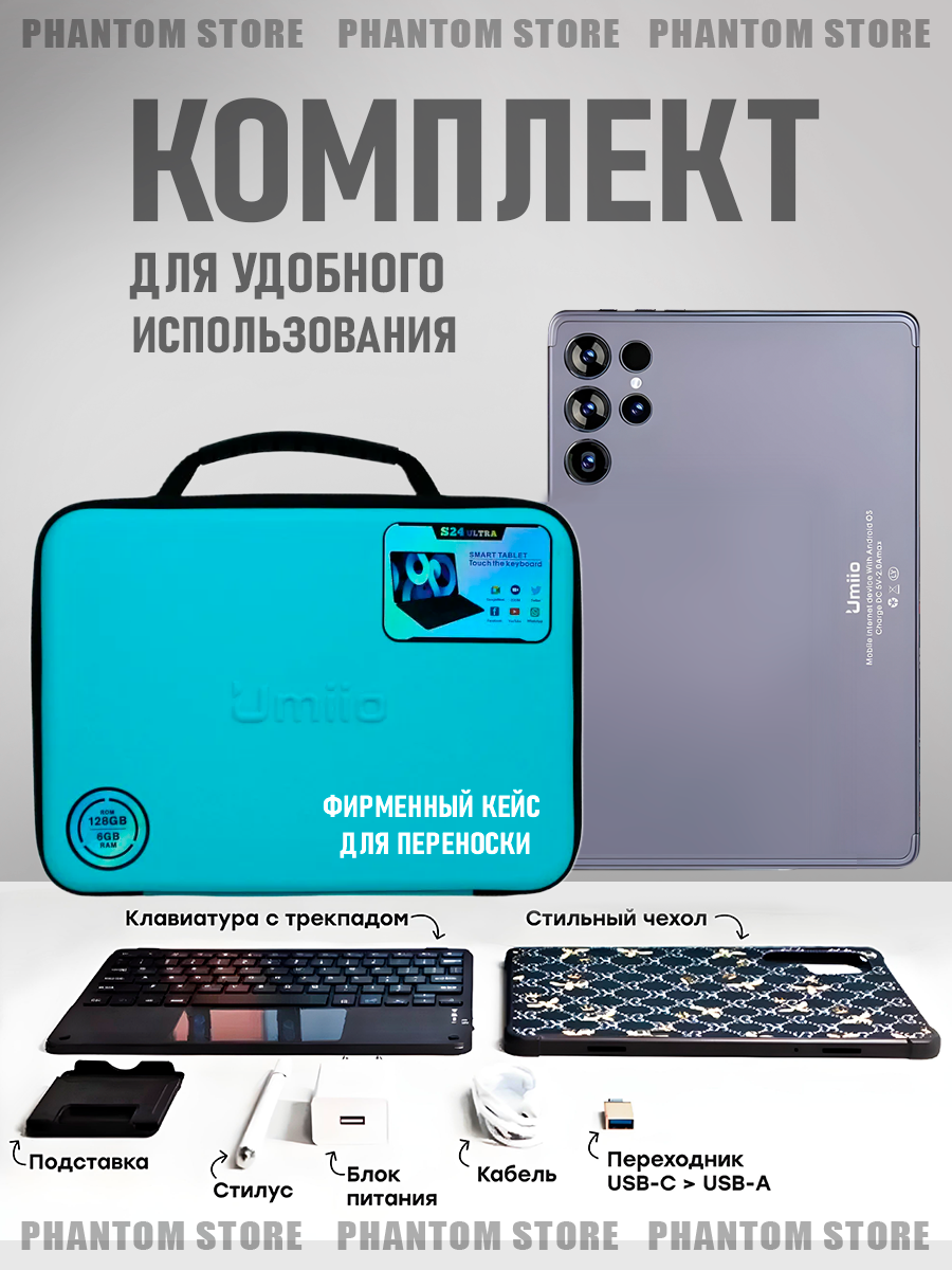 Планшет Umiio S24 Ultra 6+128ГБ клавиатура с трекпадом и стилусом + фирменная упаковка, серый