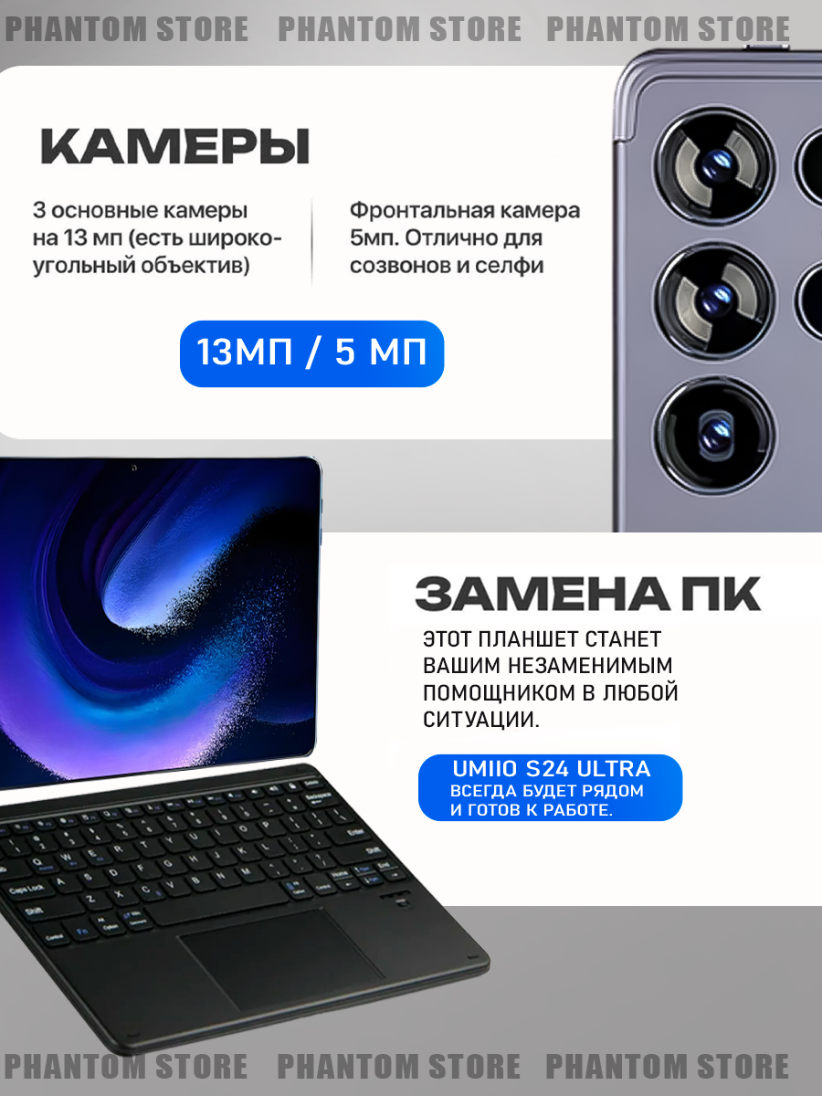 Планшет Umiio S24 Ultra 6+128ГБ клавиатура с трекпадом и стилусом + фирменная упаковка, голубой интересное: