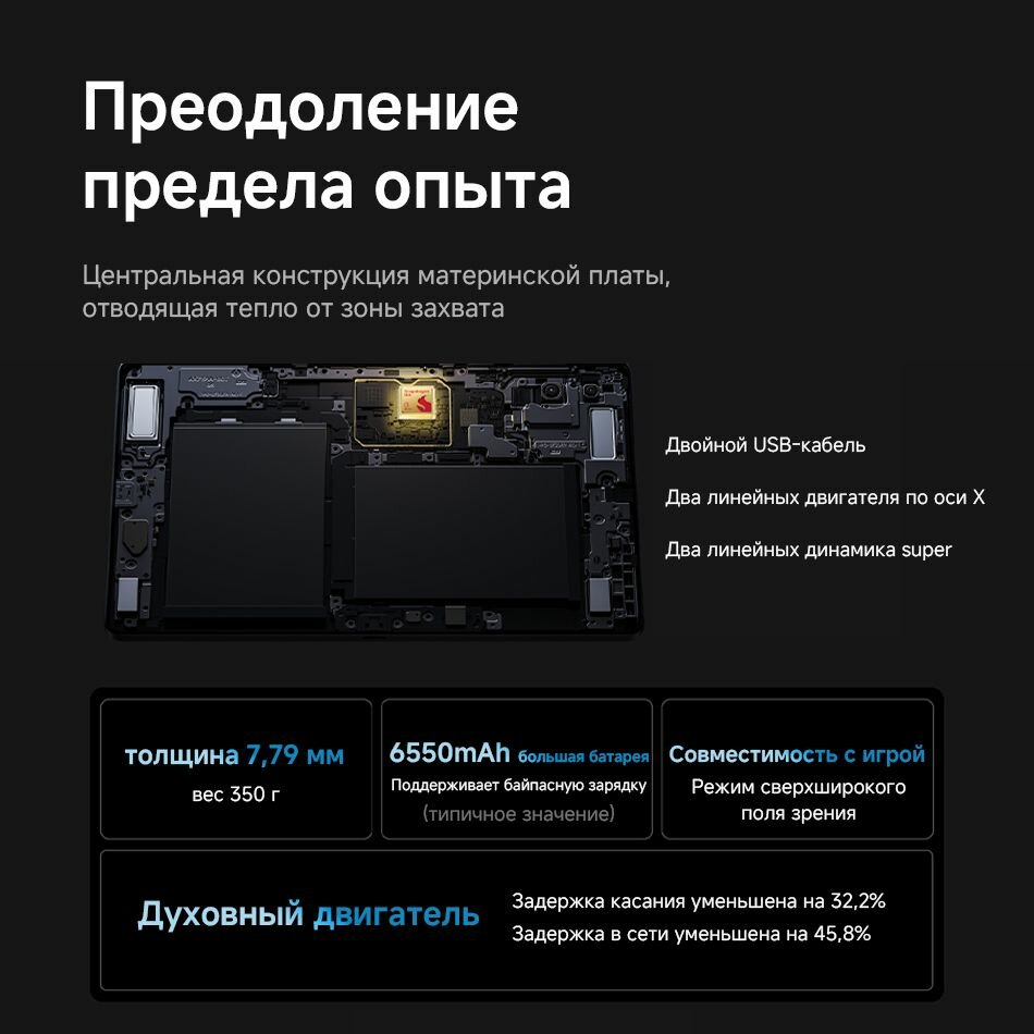 Lenovo Планшет LEGION Y700 2025 12 ГБ + 256 ГБ Китайская версия Snapdragon 8 Gen3 8,8' ЖК-экран батарея 6550 мАч интересное: