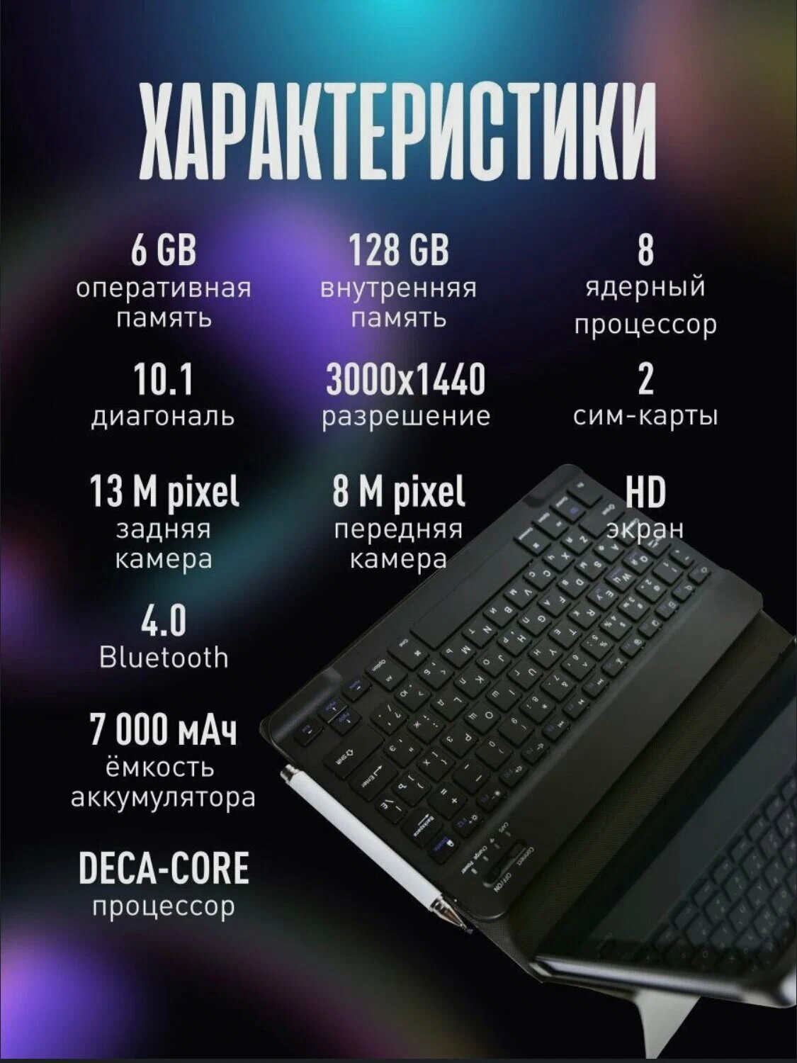 Купить Планшет Umiio A10 Pro с клавиатурой, чехлом и стилусом, 6/128Гб, Android 11, экран 10.1", синий