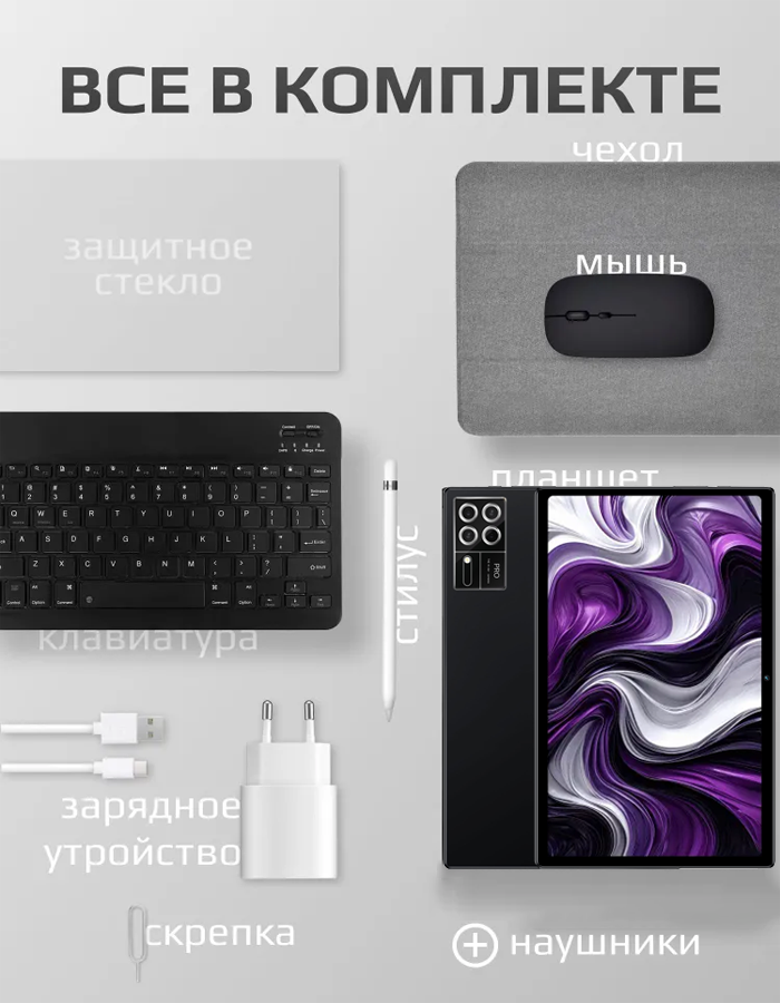Планшет со стилусом с клавиатурой игровой ADVEPRO Pad15 Pro, экран 10,1", SIM-карты, 16ГБ+1ТБ, чёрный интересное:
