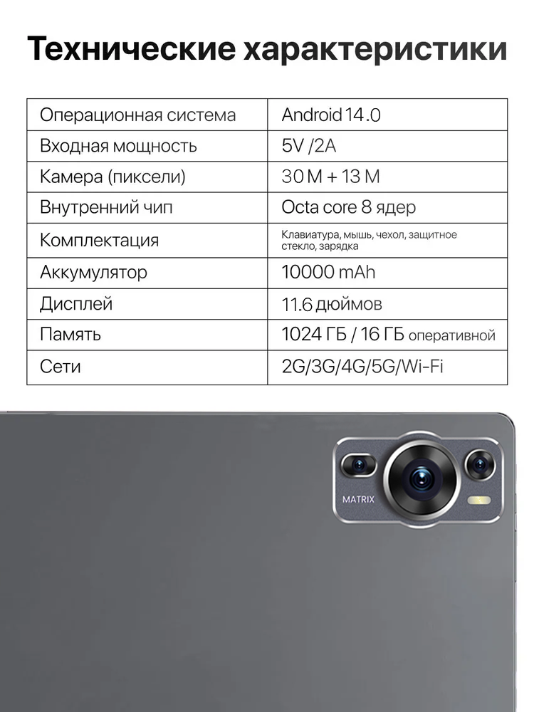 Планшет ADVEPRO P60, с клавиатурой, 16GB, 1024 GB, IPS, 11", Android 14 интересное: