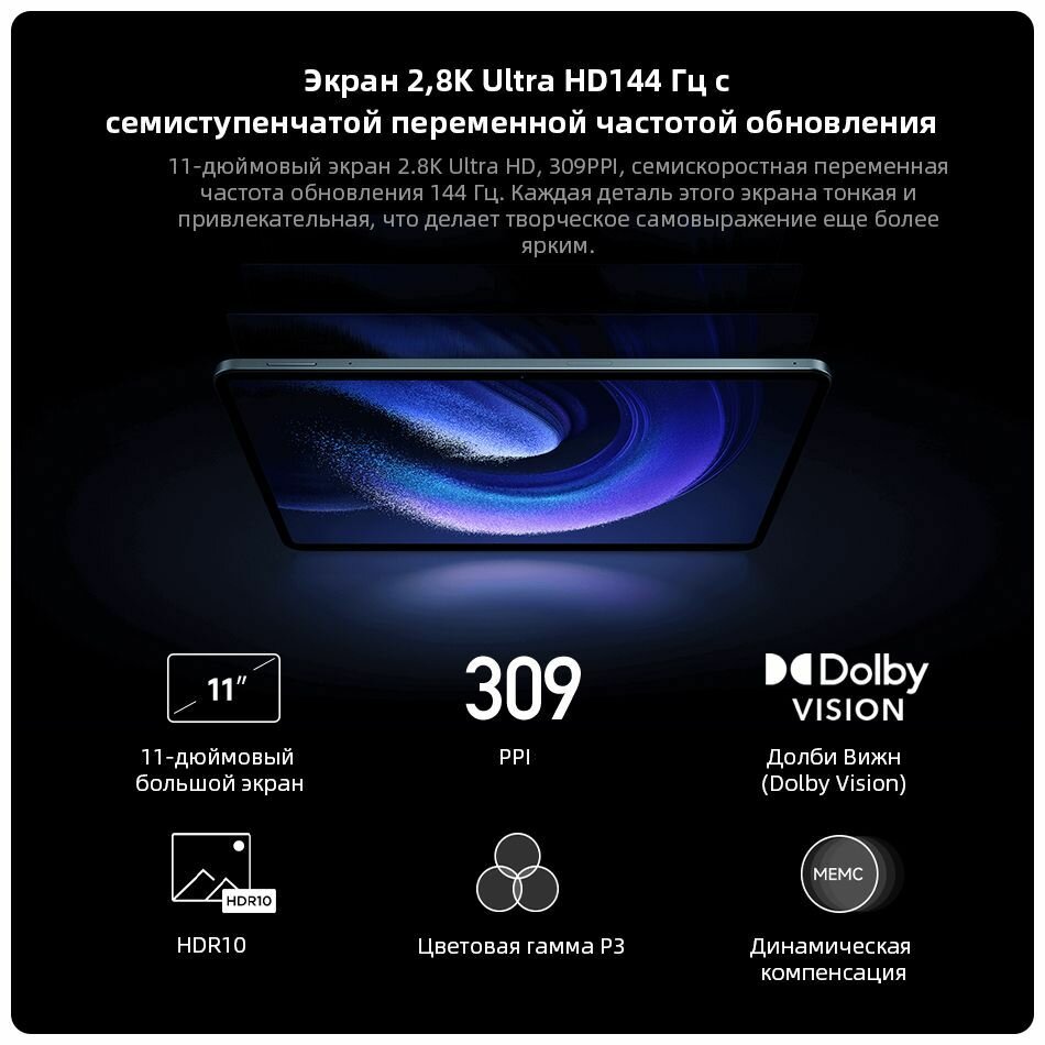 Планшет Xiaomi Pad 6 Pro китайская версия 2.8K 144 Гц, 11" 8 ГБ/256 ГБ Чёрный интересное: