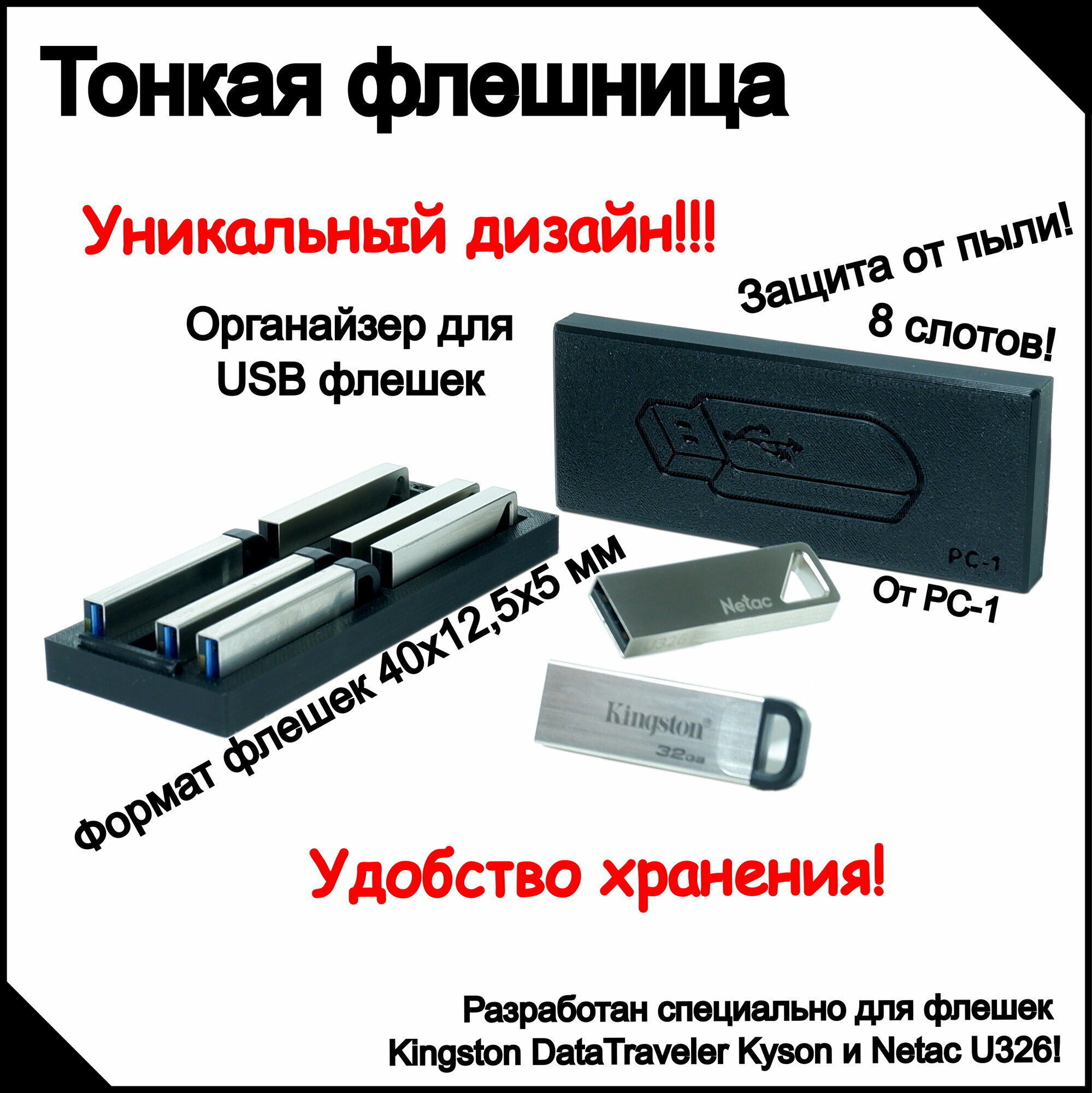 Тонкая флешница PC-1 на 8 USB флешек. Органайзер для флеш накопителей размером 40x12.5x5 мм (для usb flash Kingston Dat Travel Kison и Netac U326) интересное: