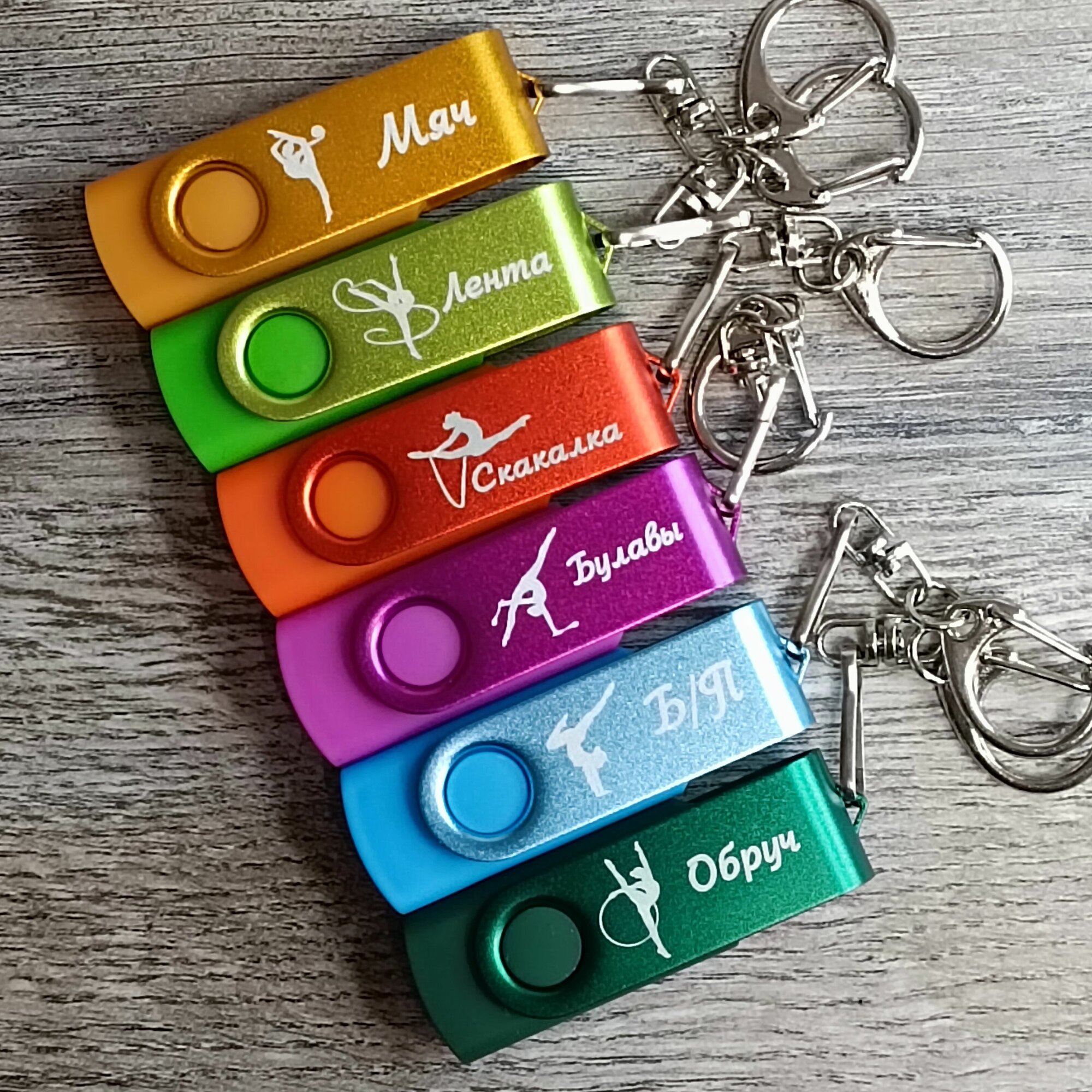 Набор USB-накопителей ГифтСтори для художественной гимнастики с гравировкой всех дисциплин "Колор", 4ГБ, USB 2.0, 6 шт.