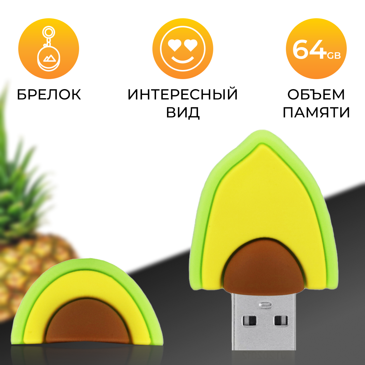 USB Флеш-накопитель 64 ГБ для компьютера и ноутбука / Оригинальная подарочная ЮСБ флешка для ПК / Сувенирная флешка 64 GB / Сладкий Авокадо