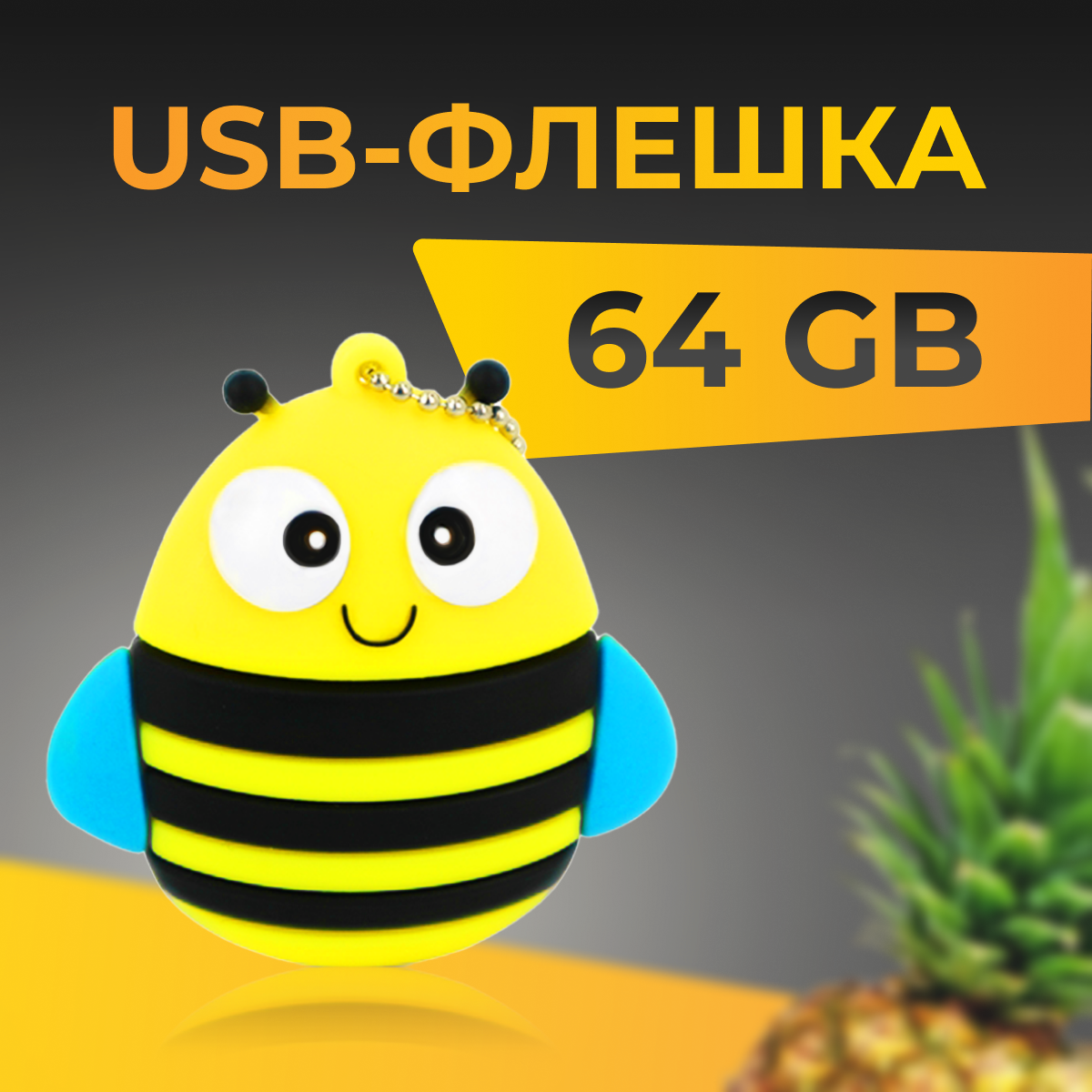 Купить USB Флеш-накопитель 64 ГБ для компьютера и ноутбука / Оригинальная подарочная ЮСБ флешка для ПК / Сувенирная флешка 64 GB / Пчела
