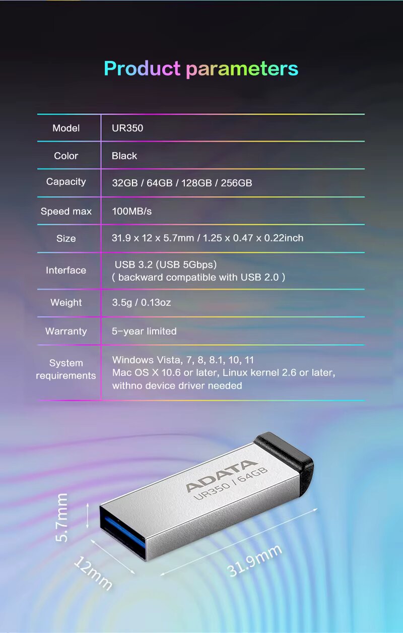 Ниже Вы можете прочитать отзывы на Супербыстрая флэшка ADATA UR350 - 128 Гб - 5 Гб/сек - USB 3.2 Gen1, ознакомится с подробными характеристиками, посмотреть интересные обзоры и фотографии на Супербыстрая флэшка ADATA UR350 - 128 Гб - 5 Гб/сек - USB 3.2 Gen1.