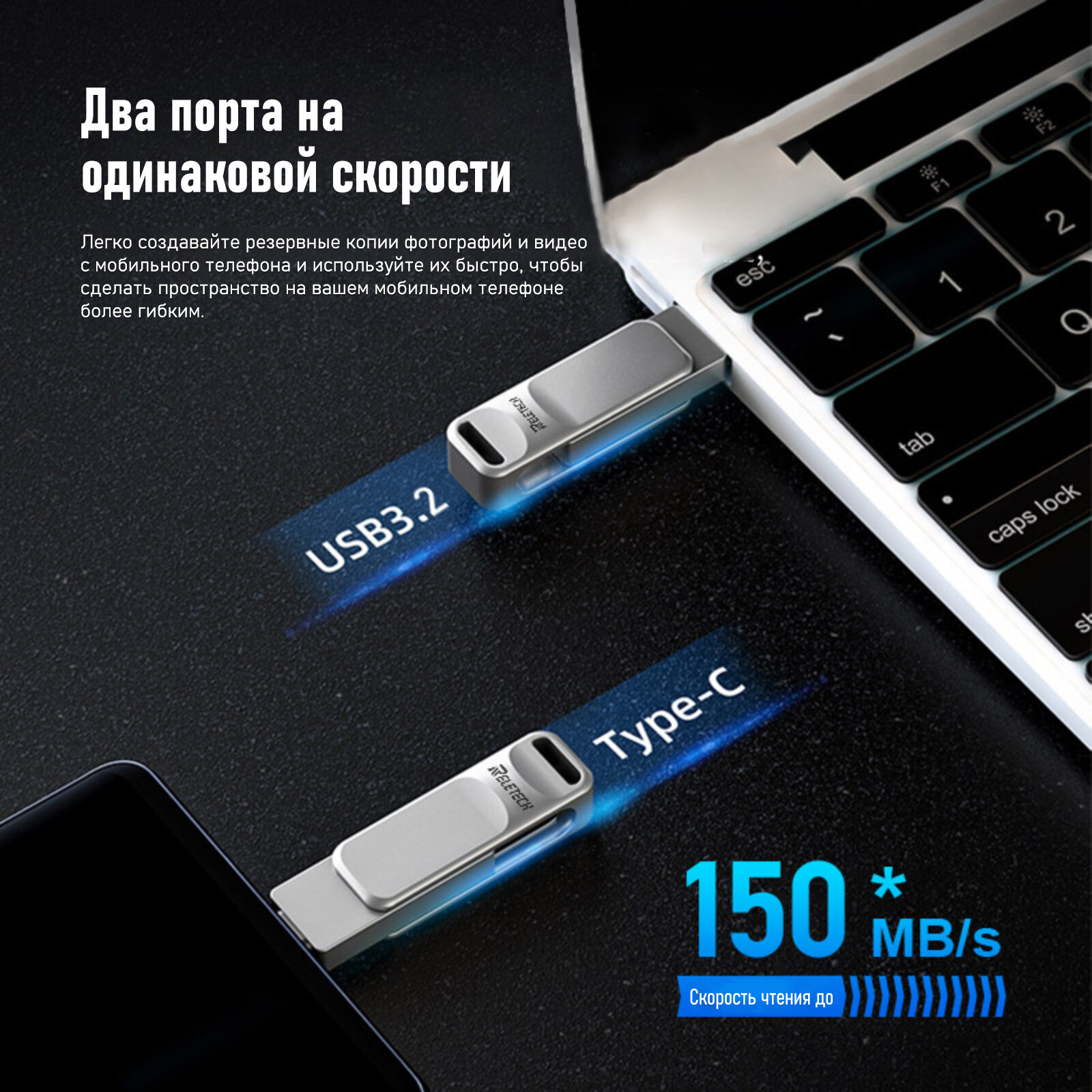 USB Флешка 128 Гб Reletech USB 3.2 & Type-C, флешка для телефона, компьютера интересное: