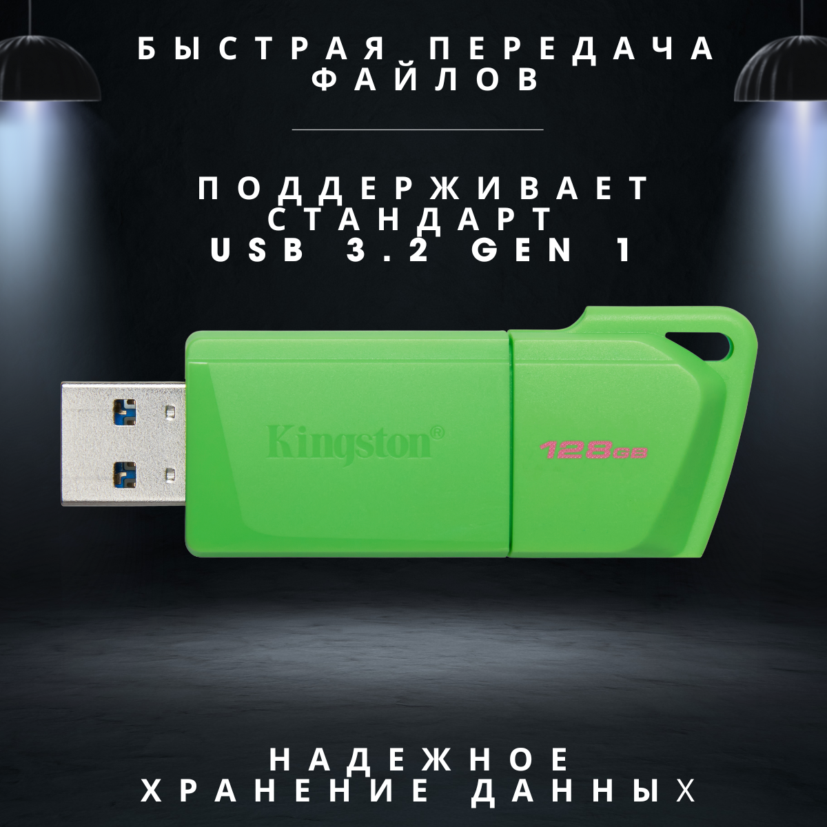 Флешка Kingston USB-накопитель DataTraveler Exodia M 128 GB USB 3.2 NEON (GREEN) зеленый, KC-U2L128-7LG интересное: