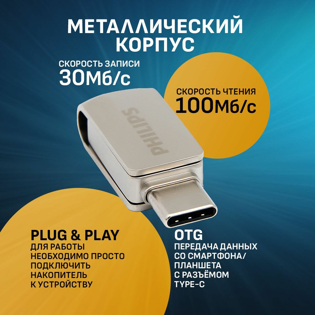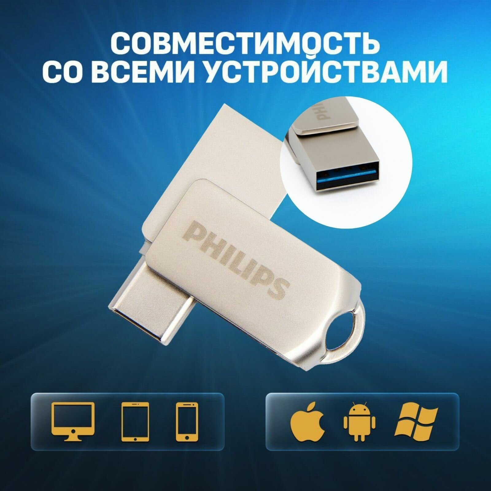 Флешка USB Type C PHILIPS 16 GB 2 в 1, флеш-накопитель USB 3.0 интересное: