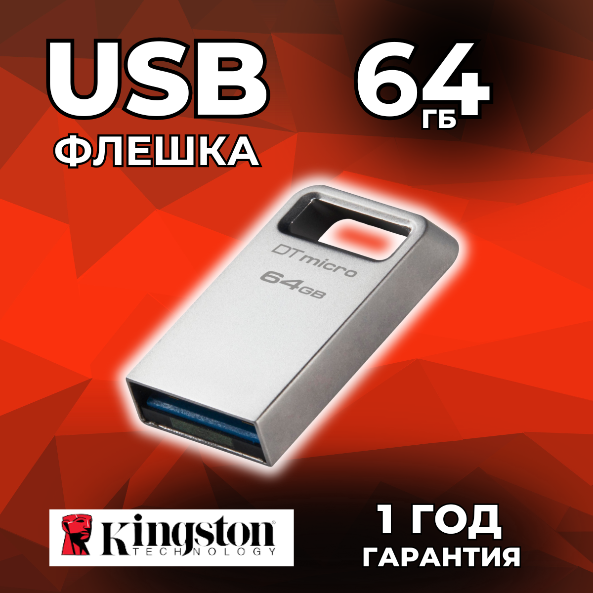 Флешка USB 64gb Kingston DataTraveler Micro, USB 3.2 Gen 1, серебристый интересное: