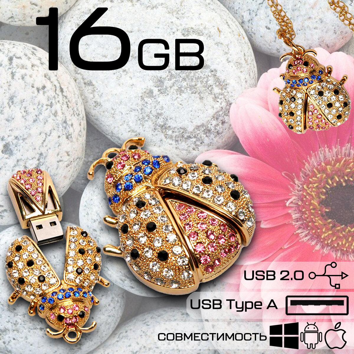 СохранитьМеталлическая флешка со стразами "Жук" (16 Гб / GB USB 2.0 Золотой/Gold ZHUK Оригинальный красивый подарок для девушки 14 февраля день влюбленных) интересное: