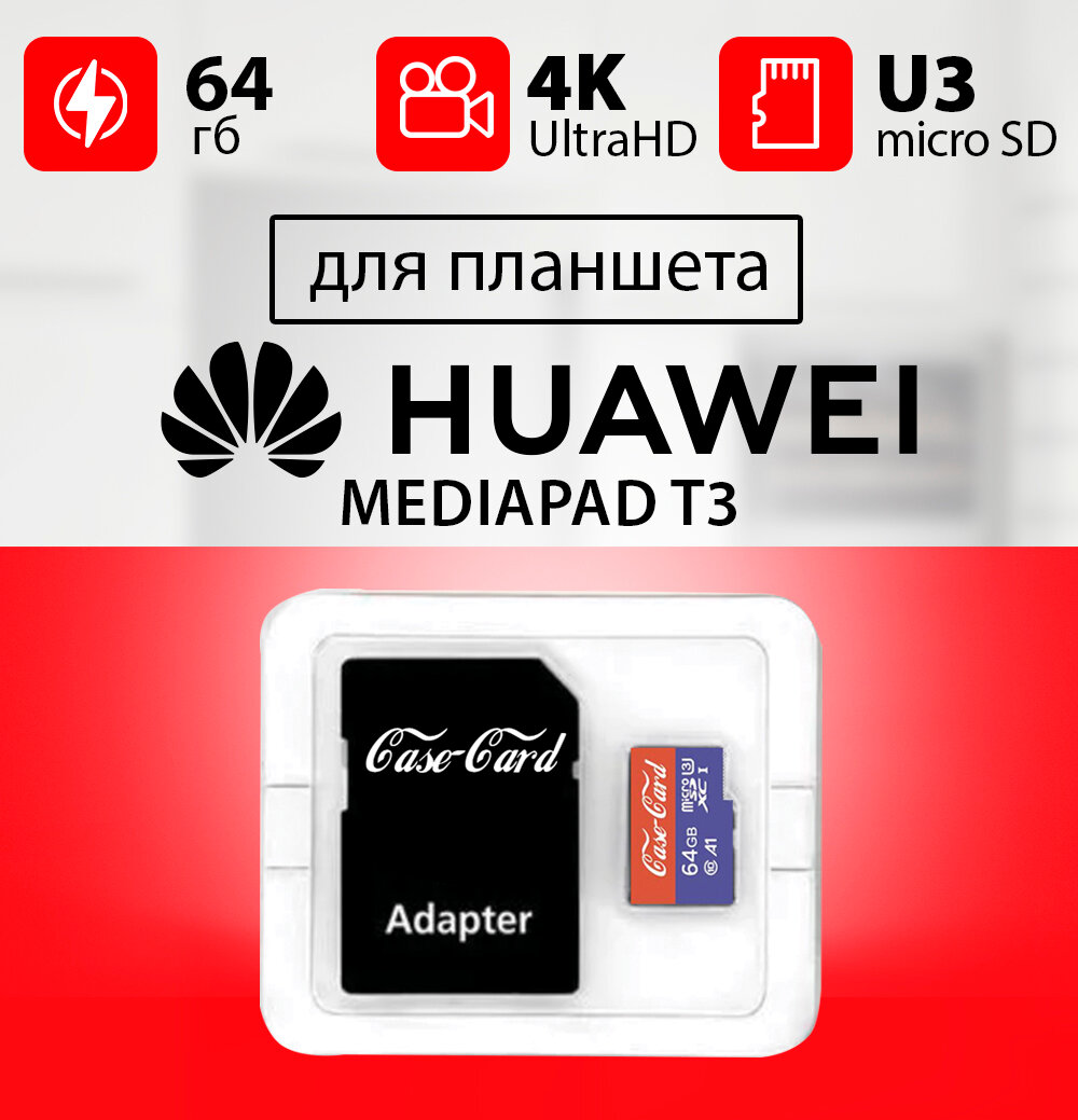 Купить Карта памяти для планшета Huawei mediapad t3 / флешка подходит для Хуавей медиапад т3 64 гб Case Card 10 U3 V30 Ultra HD