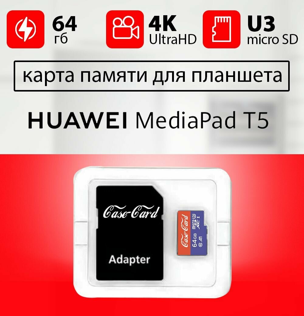 Карта памяти для планшета Huawei mediapad t3 / флешка подходит для Хуавей медиапад т3 64 гб Case Card 10 U3 V30 Ultra HD